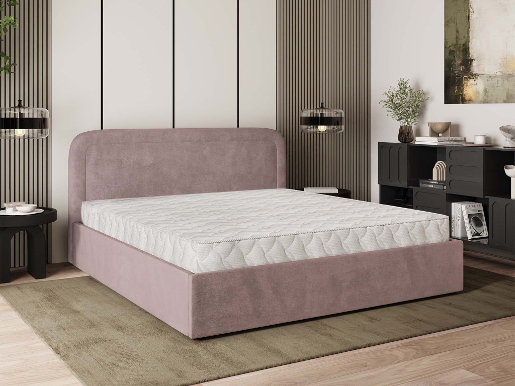 A nem mindennapi rózsaszín szövettel kárpitozott BENIRA K ágyneműtartós franciaágy 180x200 a hálószoba dísze lesz majd. A robusztus szerkezete és a középső megerősítés kivételes stabilitást és tartósságot biztosít a mindennapos használathoz. A Benira K ágy nem csupán egy egyszerű bútordarab, de a nyugalom szigete is, ahol a hosszú nap után valódi pihenés vár majd mindenkire. Az ágy magas háttámlával rendelkezik, amelyet elegáns steppelés díszít. Ez a puha kárpitozott ágytámla igazán jó szolgálatot tesz majd az esti tévénézés vagy könyvolvasás közben. A franciaágy ágyneműtartóval is rendelkezik, amely a fekhely alatt helyezkedik el.