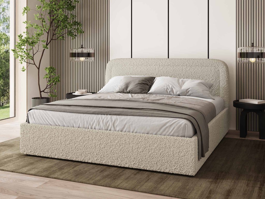 A bézs bouklé szövettel kárpitozott minőségi Benira Q franciaágy 140x200 a hálószoba elegáns központi darabja is lesz. Kifinomult megjelenésével, időtálló formavilágával és minőségi kárpitozásával a nyugalom, a stílus és a mindennapi kényelem tökéletes harmóniáját kínálja.