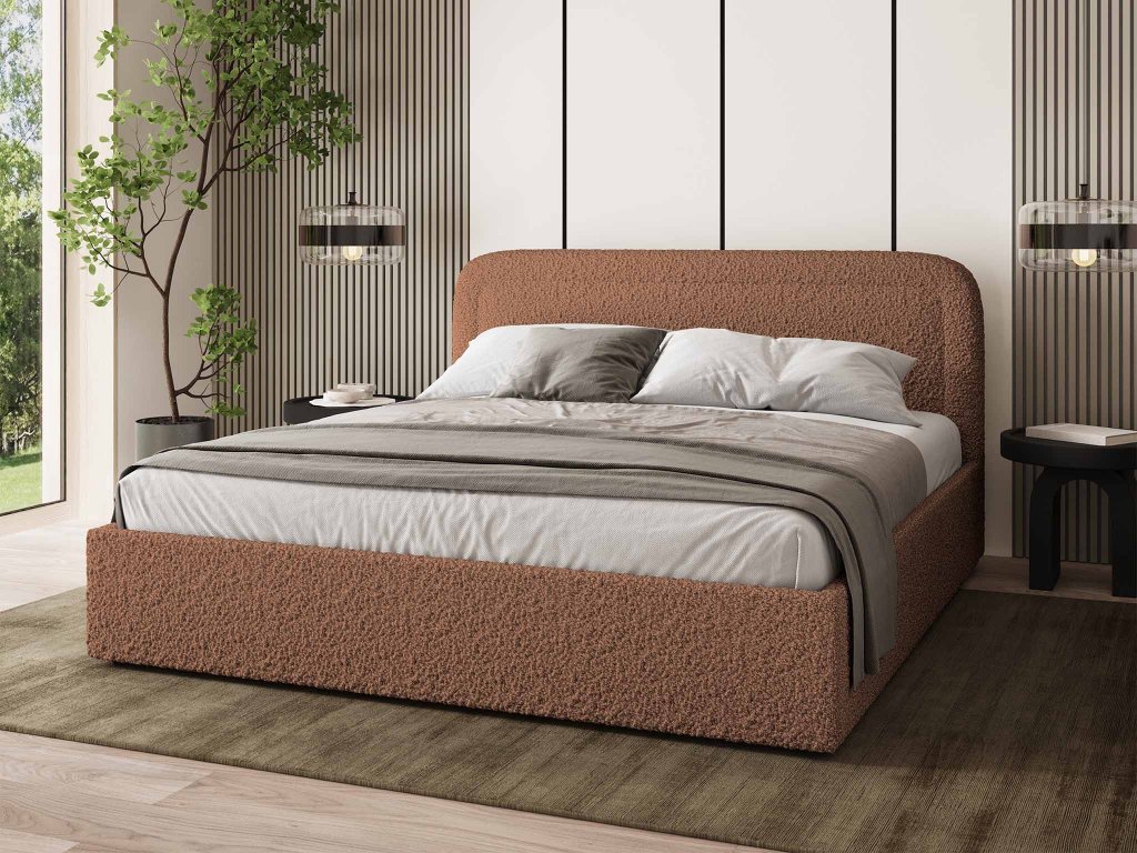 A Benira Q téglavörös ágyneműtartós franciaágy könnyed és elegáns hatást kelt. Igazán jól illeszkedik a legkülönfélébb stílusokhoz – a modern minimalizmustól egészen a romantikus hangulatú hálószobákig. Olyan, mint egy üres vászon, amelyet saját ízlésének megfelelően formálhat, univerzális megjelenésének köszönhetően pedig harmonikus része lesz otthonának. Az ágy mellé éjjeliszekrényt, komódot és gardróbszekrényt is ajánlunk kiegészítőként.
