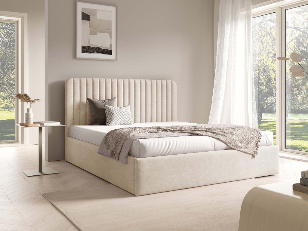 BEST 2 kárpitozott franciaágy ágyneműtartóval 180x200 - krémszín