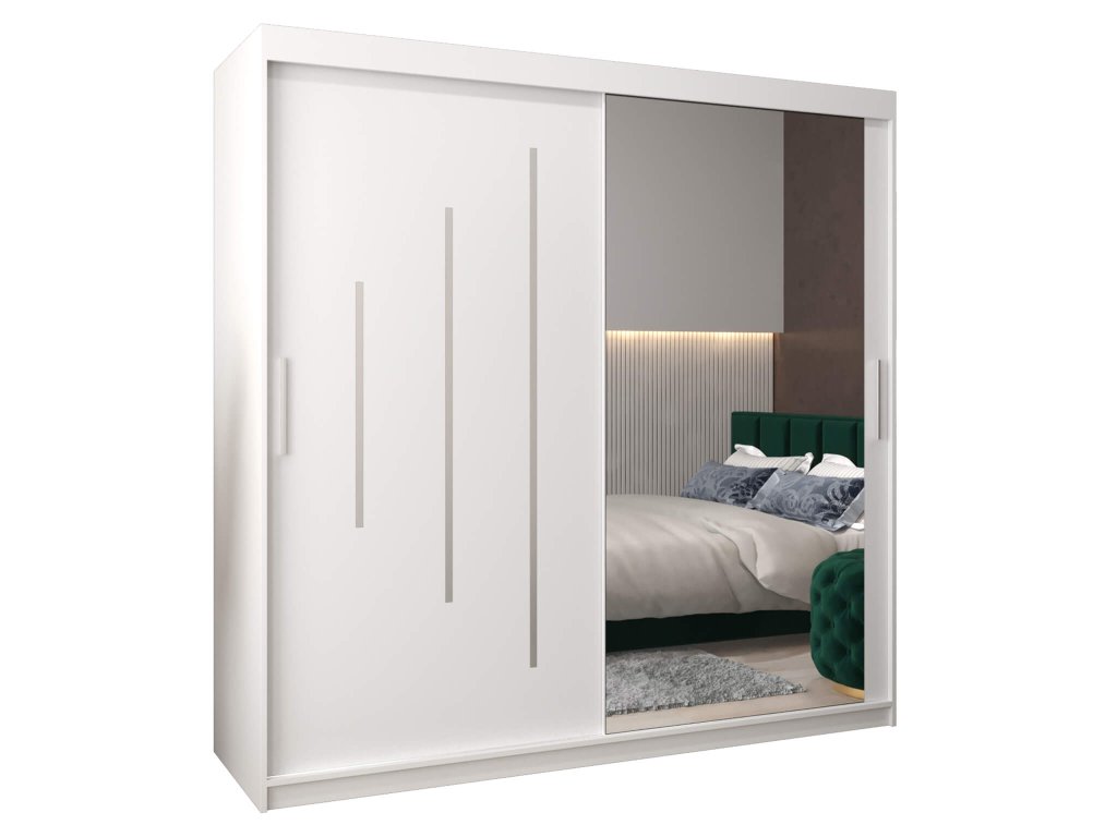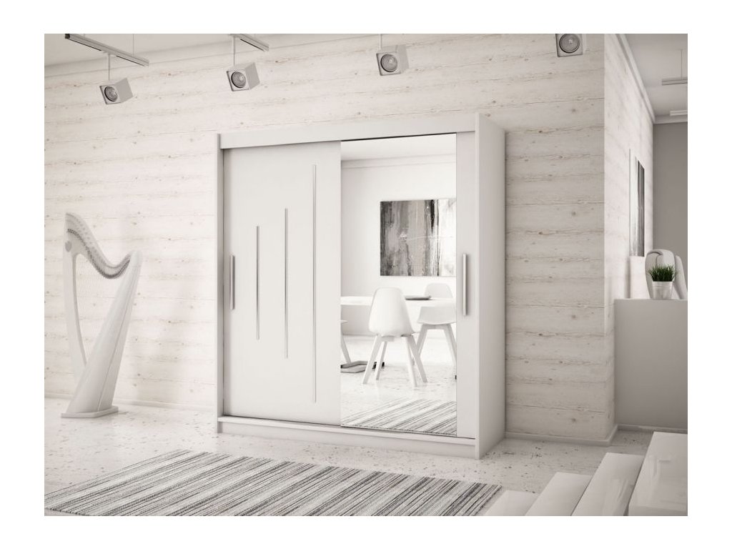 A ruhaszekrény kiváló választás elő- és hálószobába is. A Bethany II szekrény bútorlapból készül, az élek minőségi PVC furnérral lezárva. A ,,BIMAK“ tolórendszer biztosítja alumínium síneken a tolóajtók kényelmes kinyitását és becsukását. A szekrény belső elrendezése 3 részre van osztva. A szekrény mindkét oldalán 4-4 polca elegendő tároló helyet biztosít. A közepén egy polc és két akasztórúd van.