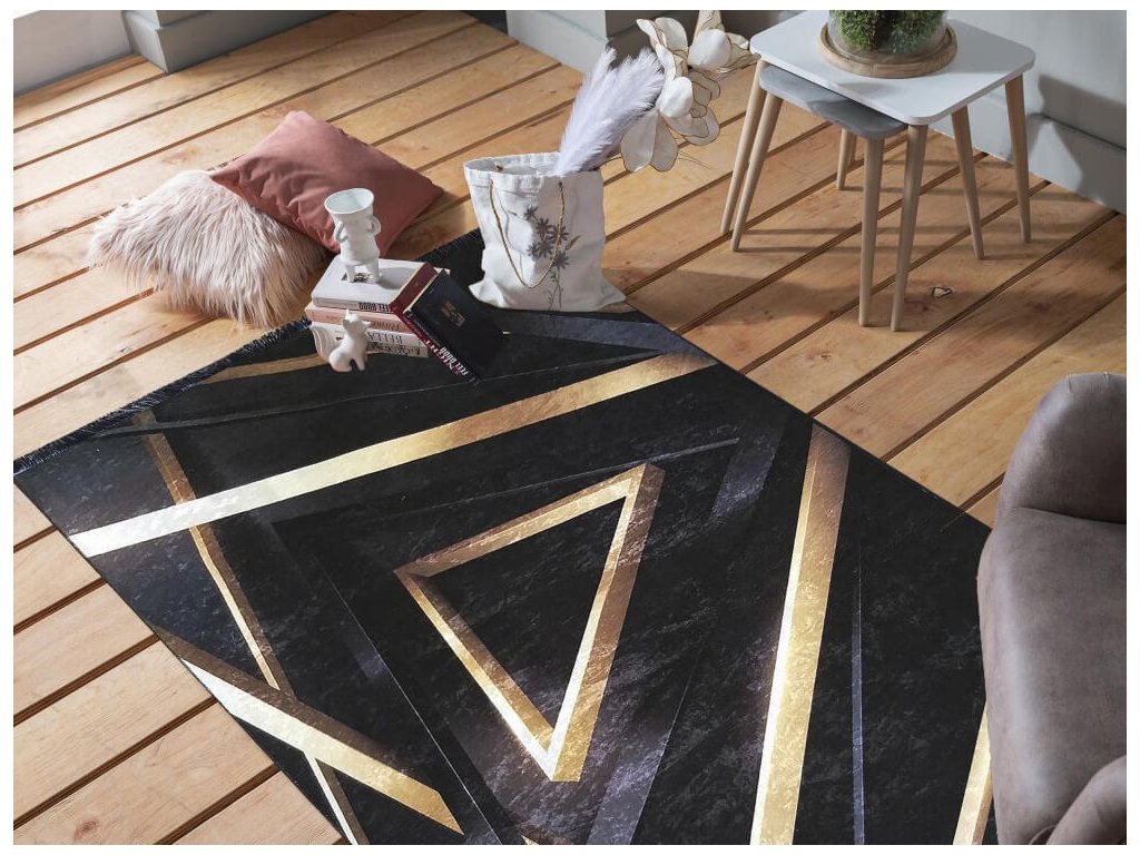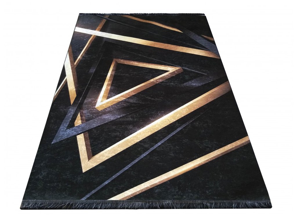 Gyönyörű BILD arany - kék csúszásgátlós szőnyeg, amely biztosítja a biztonságát és a kényelmét. A 3D minta mindenkit első látásra lenyűgöz. Az elegáns kék szőnyeg a legjobb minőségű anyagokból készül, melynek köszönhetően nagyon strapabíró és ellenálló. Olyan helyre is elhelyezheti, ahol sok ember jár-kel, ugyanis könnyen mosógépben mosható.