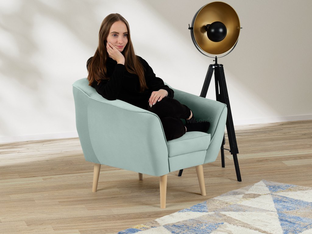 A gyönyörű kék szövettel kárpitozott BJORN fotel egyszerűen nem marad figyelmen kívül sehol. A kék színének köszönhetően modern kinézettel rendelkezik. Az ülőfelület T30-as közepes keménységű habból készült, amely tökéletes kényelmet garantál. A stabilitását a tömör fából készült lábai biztosítják natúr színben, amelyek nem csak szépek, de praktikus kiegészítői is a fotelnak. Az ergonomikusan formázott háttámla kényelmes ülést biztosít.