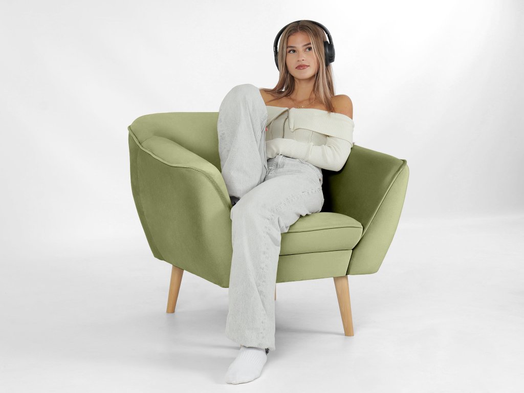A gyönyörű zöld szövettel kárpitozott BJORN fotel egyszerűen nem marad figyelmen kívül sehol. A zöld színének köszönhetően modern kinézettel rendelkezik. Az ülőfelület T30-as közepes keménységű habból készült, amely tökéletes kényelmet garantál. A stabilitását a tömör fából készült lábai biztosítják natúr színben, amelyek nem csak szépek, de praktikus kiegészítői is a fotelnak. Az ergonomikusan formázott háttámla kényelmes ülést biztosít.