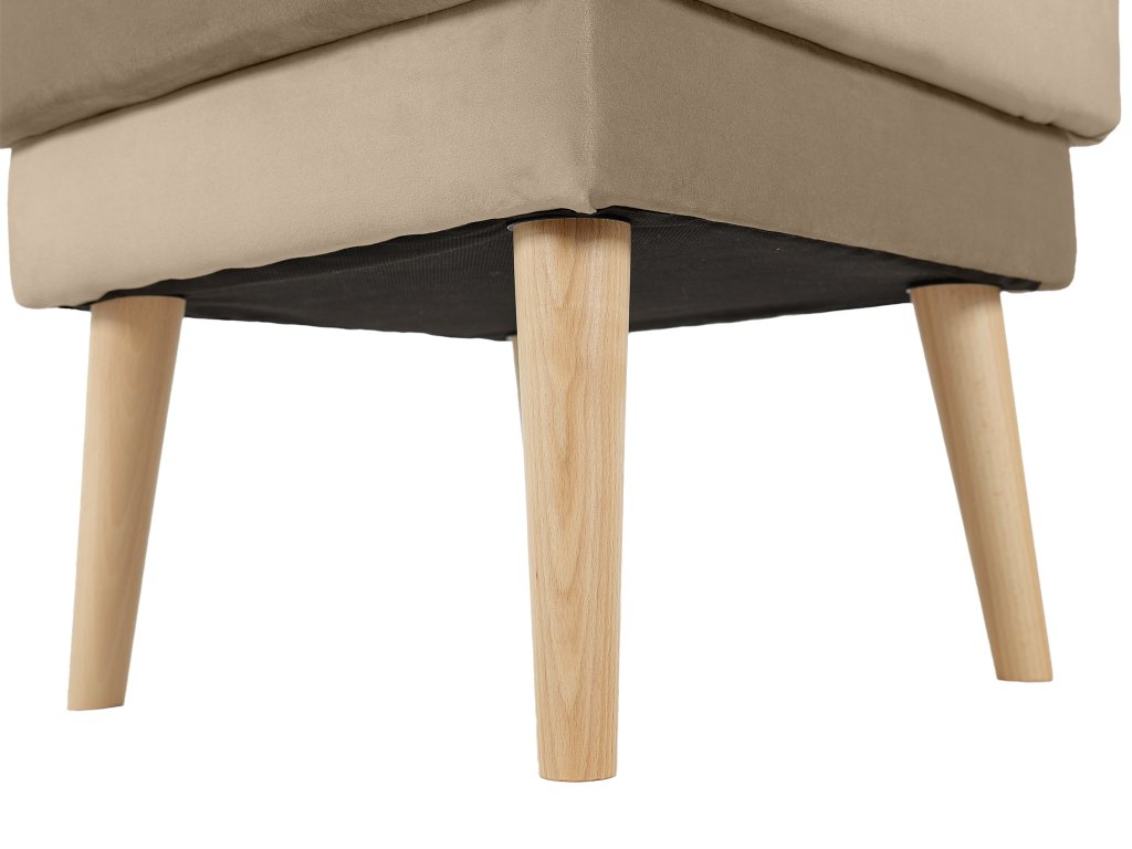 Az lábtartó ülőfelülete T30-as közepes keménységű habból készült, amely tökéletes kényelmet garantál, így ülőhelyként is használja, ha tól sok vendég érkezne. Jó helye lehet a nappaliban, a dolgozószobában, de akár a hálószobába is jó lehet a fésülködő asztal mellé és használhatja kisebb zsámolyként. A stabilitását a tömör fából készült lábai biztosítják natúr színben, amelyek nem csak szépek, de praktikus kiegészítői is a lábtartónak.