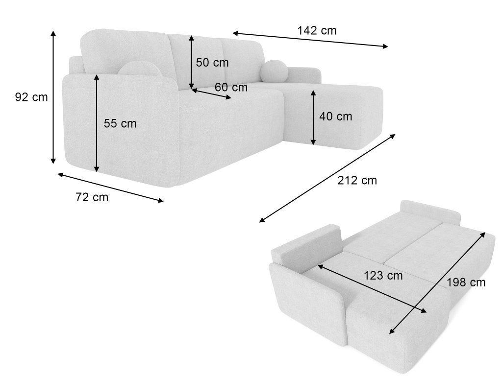 - Fekhely mérete szétnyitás után: 198 x 123 cm