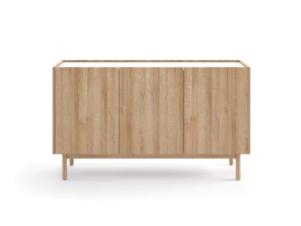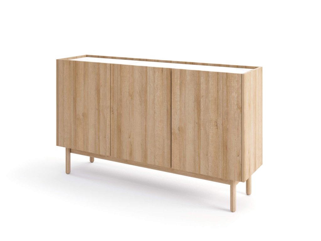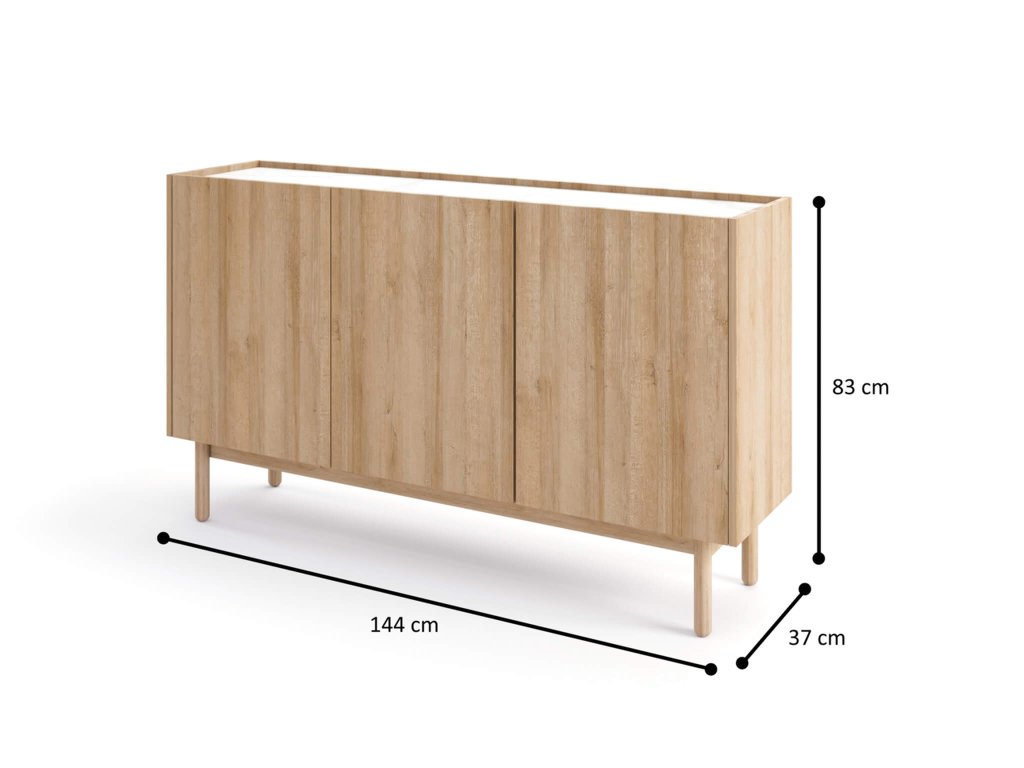 BOHO K144/83 háromajtós komód, amely egy igazán stílusos skandináv stílusú bútor darab. Tökéletes választás lehet a hálószobába, a nappaliba, a folyosóra vagy az előszobába. A kellemes riviera tölgy szín a fehér márvánnyal kombinálva igazán bámulatos hatást kelt. A számos tároló helynek köszönhetően biztos minden szobában megállja a helyét. Minden ajtó mögött egy-egy polcot helyeztek el.
