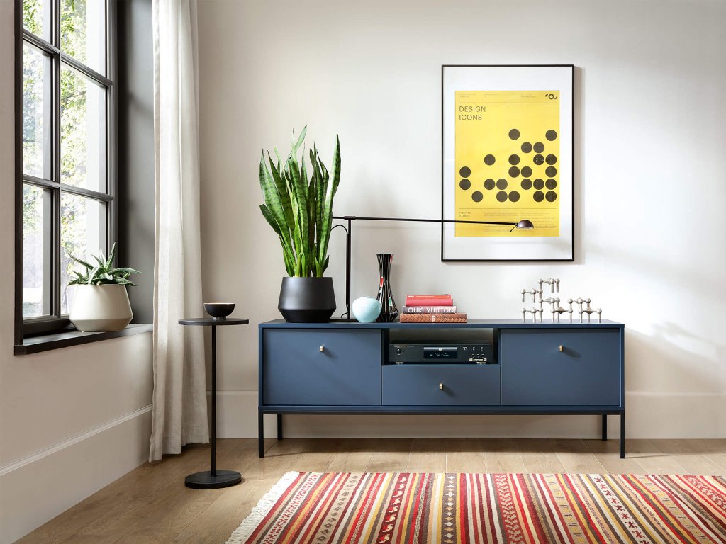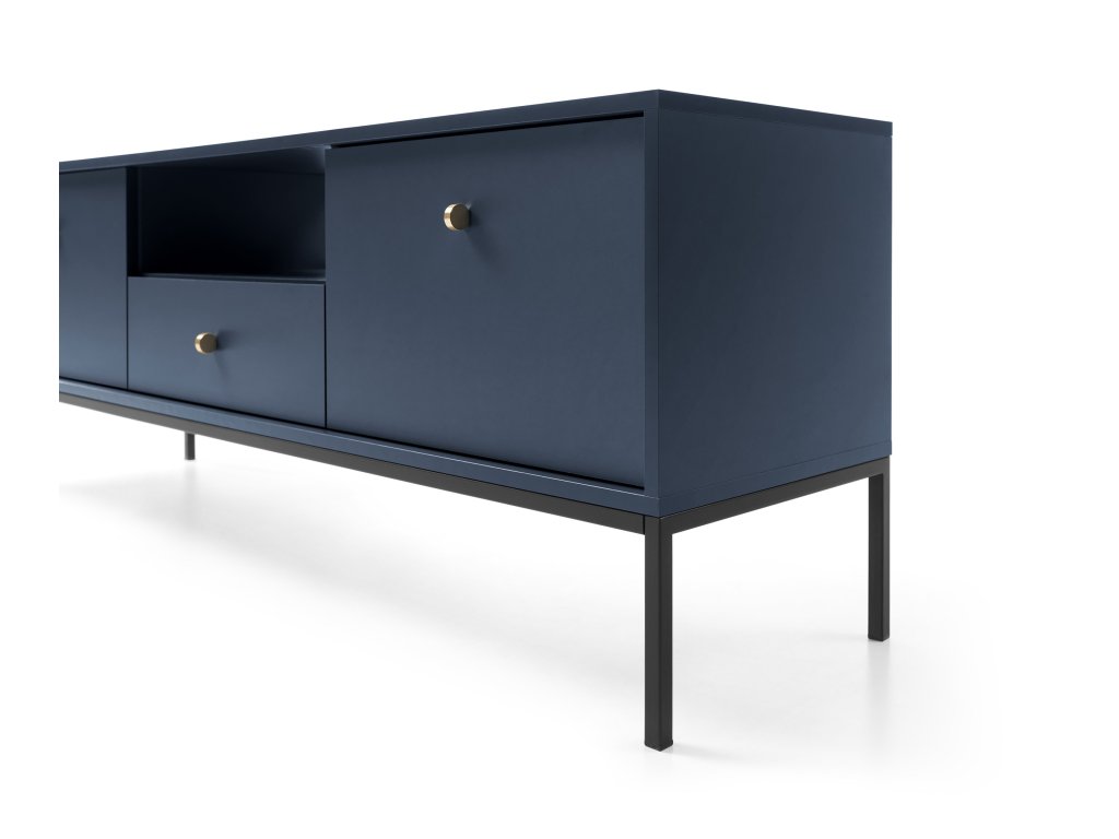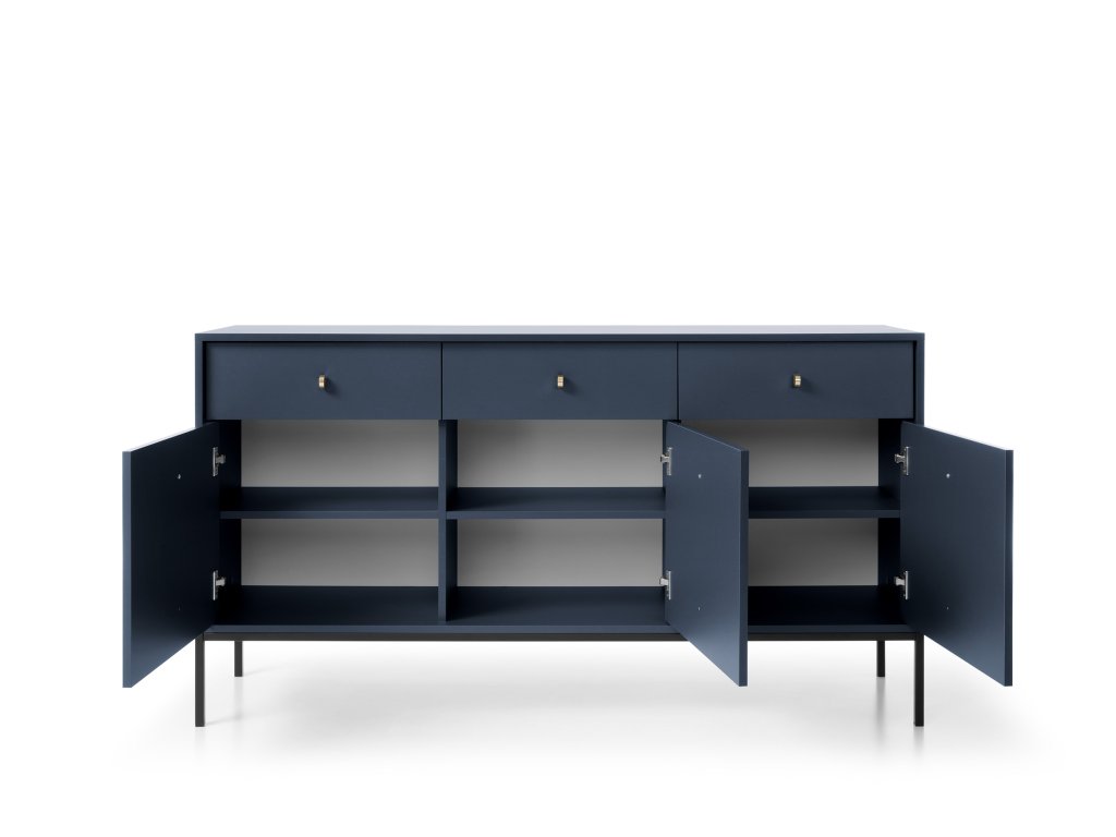 A modern BONO bútor család, amely gyönyörű kék színben készül feldobja majd a nappaliját. A nappali bútor kollekció jellemzően egyszerű és minimalista bútor darabokból áll. A Bono kollekció bútoraival egy igazán praktikus és stílusos nappalit rendezhet be. A bútorok minőségi laminált 16 mm vastag DTD bútorlapból készülnek, amely ABS élekkel biztosított a hosszabb élettartam érdekében. Az ajtók és a fiókok tanúsítvánnyal rendelkező 16 mm vastag DTD bútorlapból készülnek, szintén ABS élekkel. Az elegáns fém fogantyúk és a fekete fém lábak tökéletesítik a minimalista dizájnt.