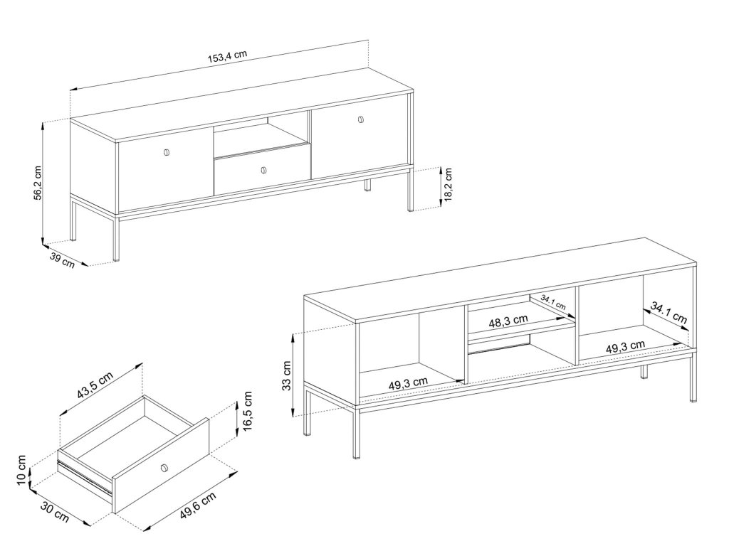 Méret (SzéxMaxMé): 153,4 x 83 x 39 cm - Bono TV154 tévés szekrény - két kis szekrénnyel, egy fiókkal és egy nyitott polccal
