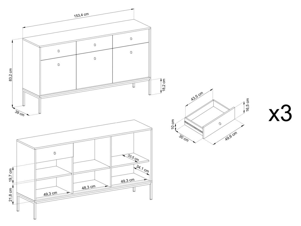 - Anyaga: minőségi laminált DTD bútorlap, ABS élek / fém