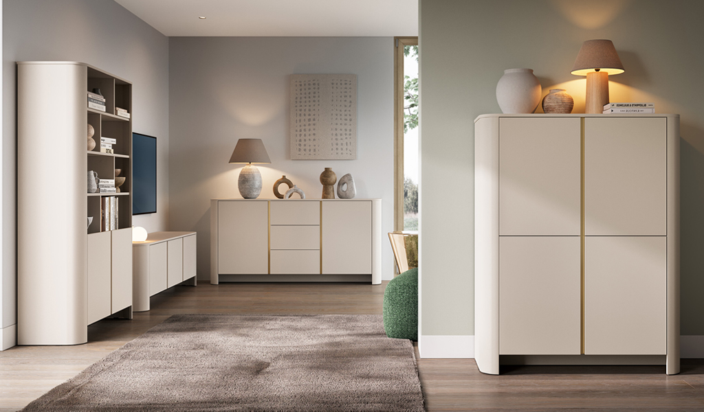 A fogantyú nélküli, úgyn. push-to-open rendszernek köszönhetően a fiókok és ajtók csal egy finom érintésre nyílnak. A kollekció két univerzális színváltozatban érhető el: a világos és elegáns kasmír szín elegánsabb hatást kelt, míg a melegebb vincenza tölgy szín otthonos, barátságos légkört teremt.