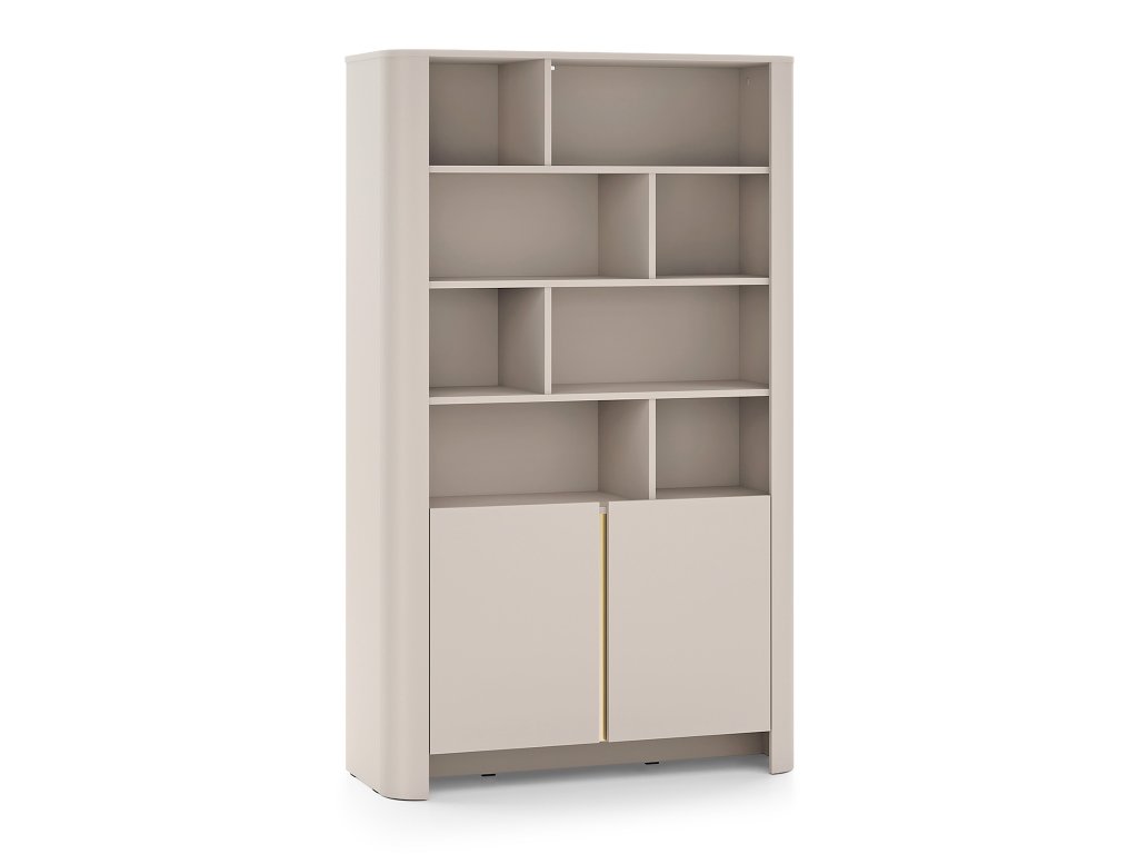 A BORI könyvespolc letisztult kasmír színben a modern stílust praktikus megoldásokkal ötvözi. A polcos szekrény felső része tökéletes könyvek, dekorációk vagy kisebb kiegészítők elhelyezésére. Az alsó részében egy kétajtós szekrény kapott helyet, amely polcokat rejt. A tiszta vonalvezetés, a lekerekített élek és a fogantyú nélküli push-to-open rendszer elegáns és időtálló megjelenést biztosít bármely helyiségben.