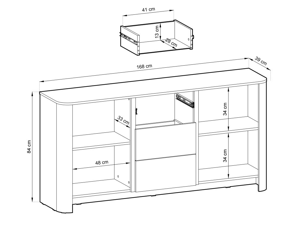 Méret (SzéxMaxMé): 168 x 52 x 39 cm - BORI K168 széles komód - három fiók és két tágas ajtós szekrény kombinációjában készült elegáns komód.