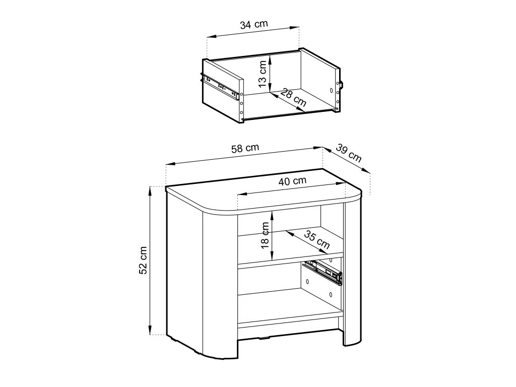 - Anyaga: laminált bútordarab LTD 16 mm, ABS élzárás