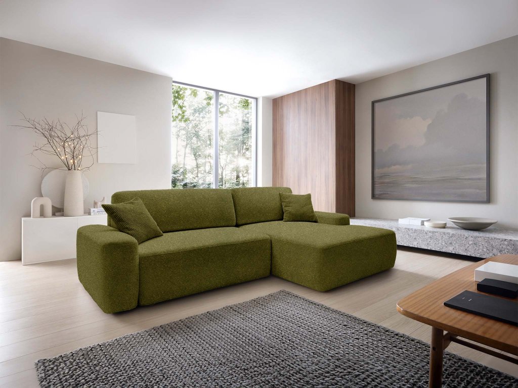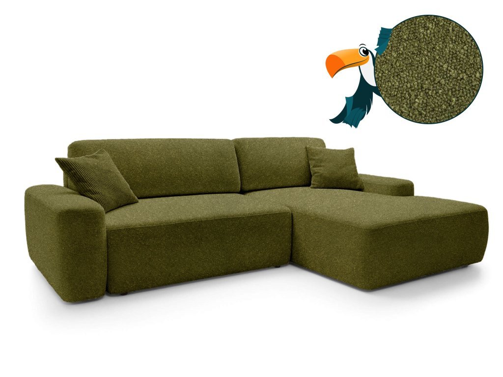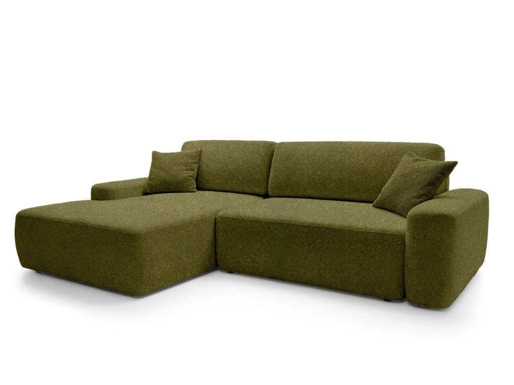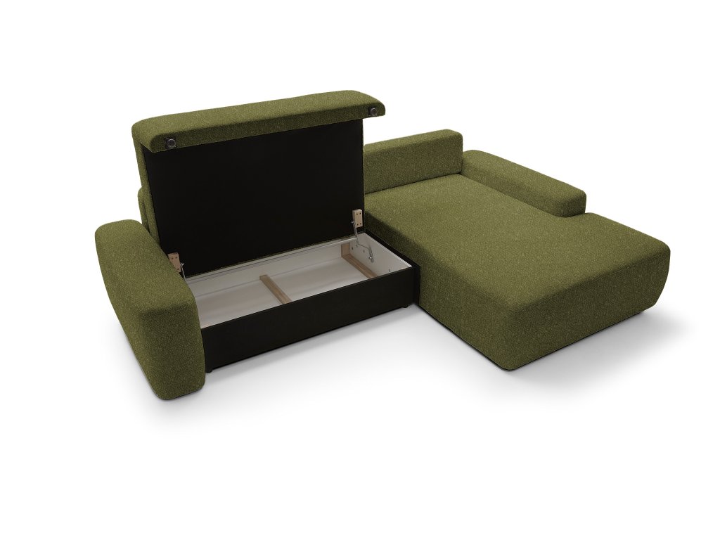 Ismerkedjen meg gyönyörű olivazöld színben készült BOULI sarok ülőgarnitúránkkal és élvezze az otthon eltöltött idő minden pillanatát. Az ülőgarnitúra praktikusságához hozzájárul a tágas ágyneműtartó tároló is, amely az ülőfelület alatt kapott helyet. Tökéletes helyet biztosít az ágyneműnek, párnáknak, plédeknek. A kihúzható kanapé nem csak igazán stílusos, de nagyon kényelmes is. Ráadásul elegendő helyet biztosít a kényelmes pihenéshez, relaxációhoz a családnak és az érkező vendégeknek is. A szétnyitható funkciónak köszönhetően ideális mindazok számára, akik gyakran fogadnak vendégeket vagy akik a nappaliban is kényelmesen fekve szeretnek tévézni. Az ágyazható kanapé szétnyitott állapotban egy 210 x 134 cm méretű fekhellyel rendelkezik. Ez nem csak egy egyszerű sarokkanapé, de egy praktikus vendégágy is. A megbízható stabil szerkezet és az innovatív design teszik igazán különlegessé ezt a modern kanapét. A két levehető párnának, a Faliste hullámrugóknak és a felhasznált PUR habnak köszönhetően biztosítva lesz a kényelme. A Bouli modell két variációban elérhető: jobbos és balos verzióban, melynek köszönhetően bármelyik nappaliban megállja a helyét. A Bouli ülőgarnitúra modern designnal, praktikus tulajdonságokkal rendelkezik, emellett pedig nagyon kényelmes is.