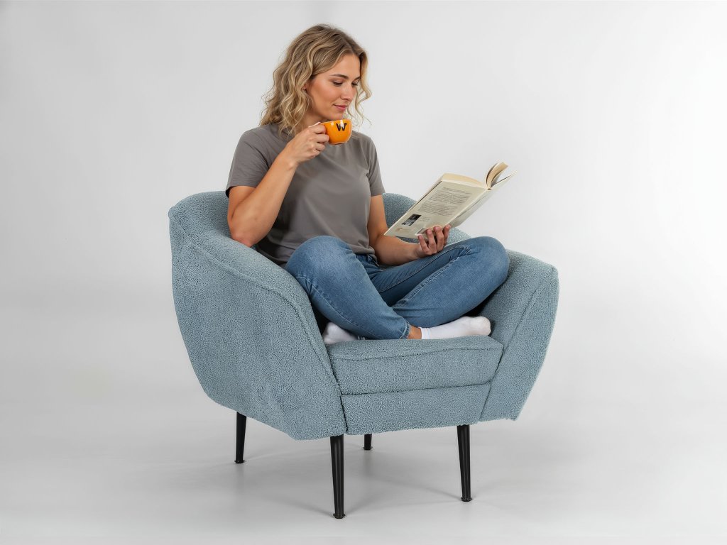 Világoskék fotel elegáns kárpitozással