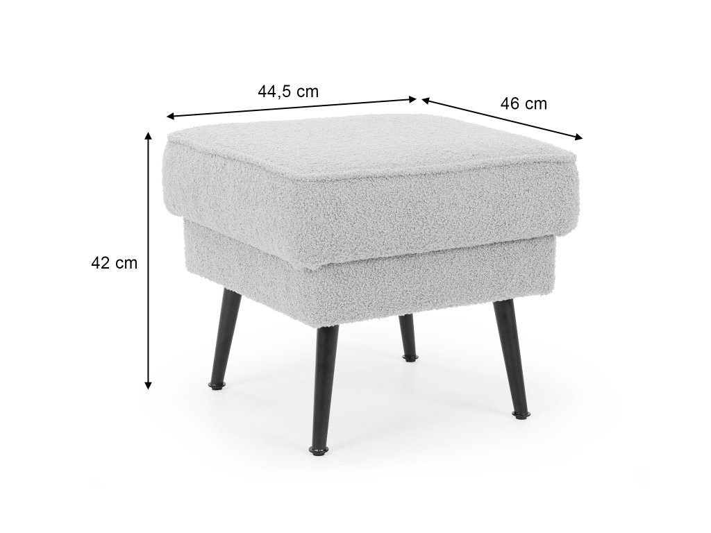 A puff stabilitását az átgondolt szerkezete biztosítja. Az ülőfelülete T30-as habból készült, amely biztosítja a kényelmességet és a megfelelő keménységet. Ezeket a tulajdonságokat biztosan értékelni fogja a mindennapi használat során. Stabil szerkezete garantálja, hogy hosszú éveken át megbízhatóan szolgálja majd Önt. A Bowy lábtartó kis méretének és alacsony súlyának köszönhetően könnyen mozgatható, és bármilyen funkciót be tud tölteni. Tökéletes lábtartó a fotelhez vagy a kanapéhoz vagy akár ideiglenes ülőhelyként is használható a vendégek számára, de különálló bútorelemként is megállja a helyét. A fekete fém lábak eleganciát kölcsönöznek a bútornak, és lehetővé teszik, hogy könnyedén fel tudjon mosni alatta.
