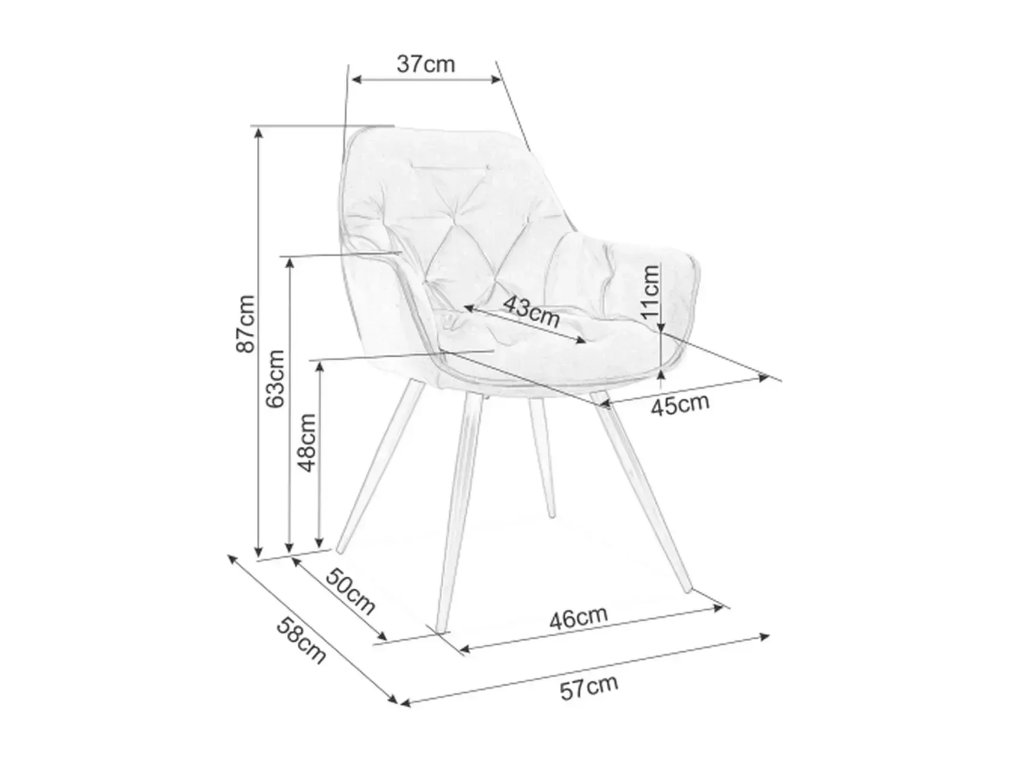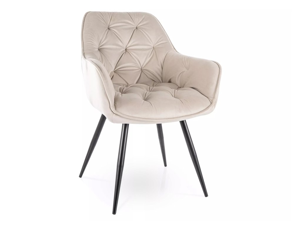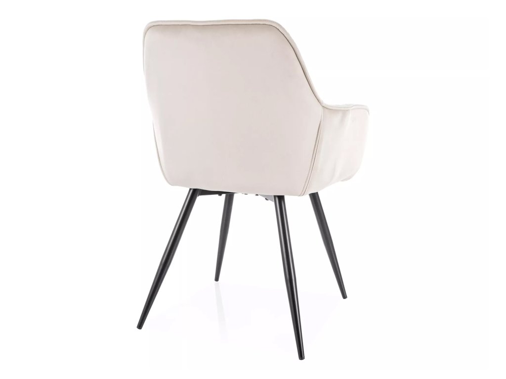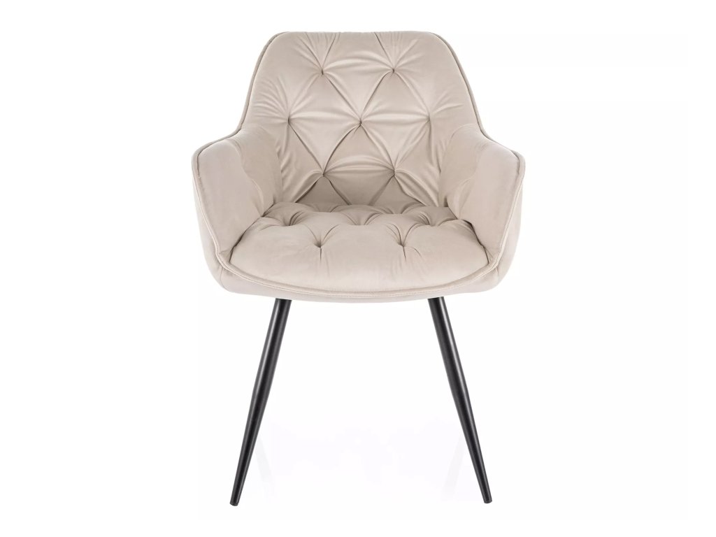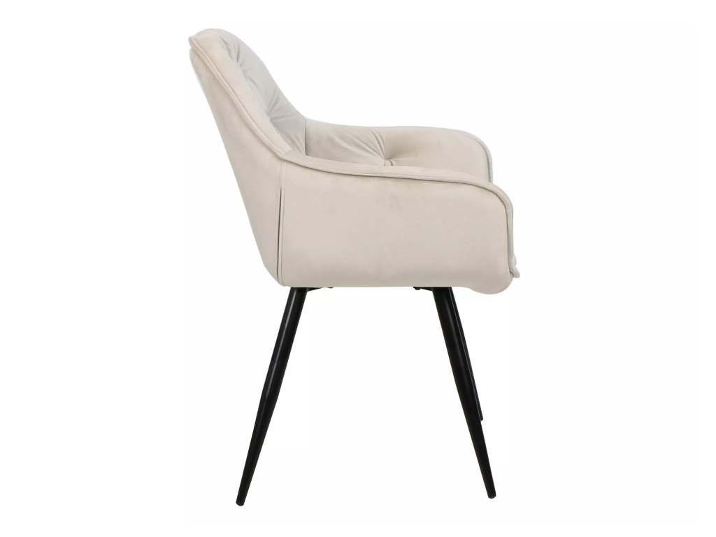 BRIA krémszínű elegáns és luxosos étkezőszék, amely a kivitelének köszönhetően nemcsak az étkezőben használható, de tökéletes választás a nappaliba vagy a hálószobába a sminkasztalhoz is. Közepesen magas formázott háttámlával és kartámlával is rendelkezik, melynek köszönhetően a szék még kényelmesebb. A gyönyörű steppelt étkezőszék bársonyos anyaggal kárpitozott, amely nem csak rendkívül jól mutat, de nagyon lágy és kellemes tapintású is. Ez az anyag rendkívül ellenálló a kikopással és a bolyhozódással szemben, továbbá nagyon könnyen tisztítható. A szék fekete fém lábakon áll.