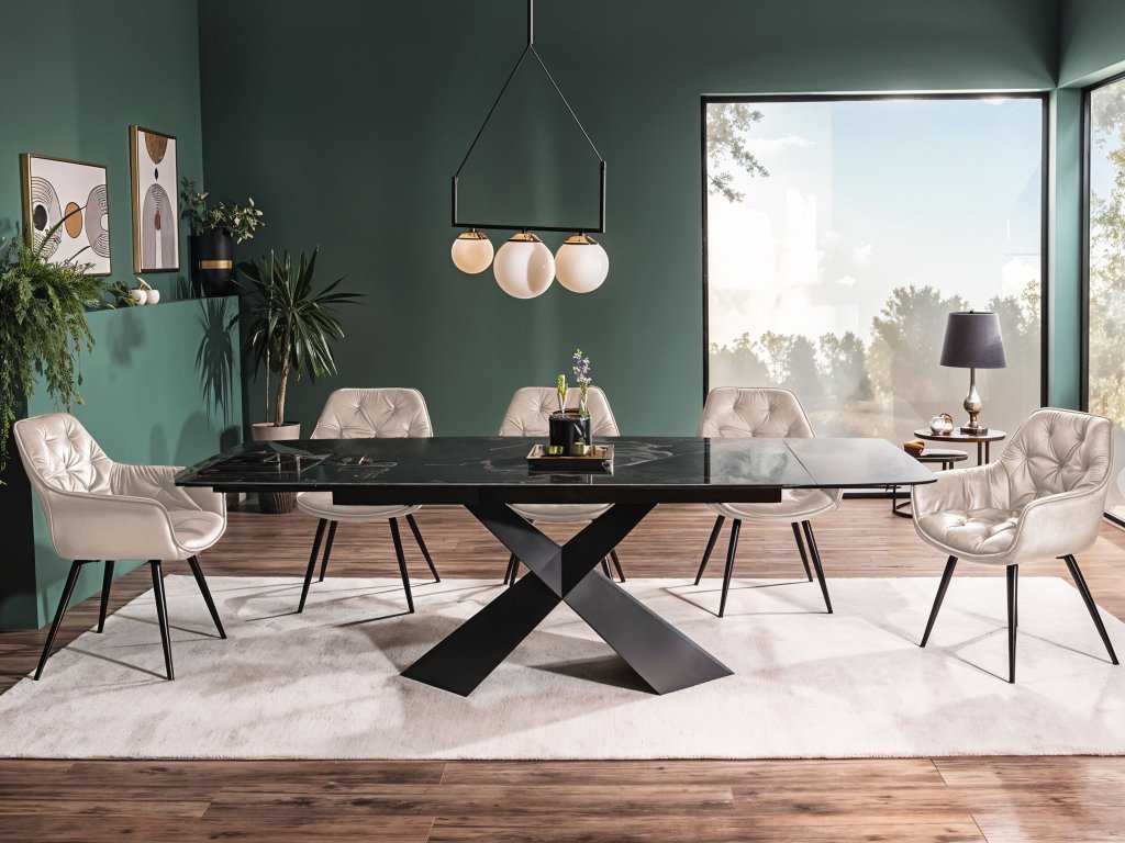 Steppelt, bársonyos anyaggal kárpitozott fekete étkezőszék