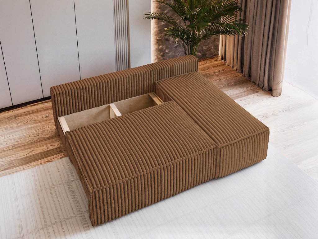 Az ágyazható Briso sarokkanapé nem csak egy kényelmes bútordarab, de igazán praktikus is - az ülőfelület alatt ugyanis egy ágyneműtartó tárolóhely található, amely ideális a pokrócok, plédek, párnák, ágyneműhuzatok tárolására.