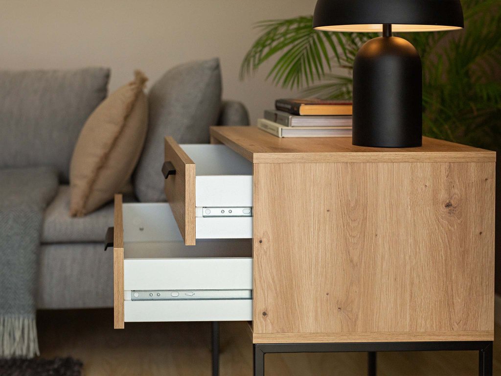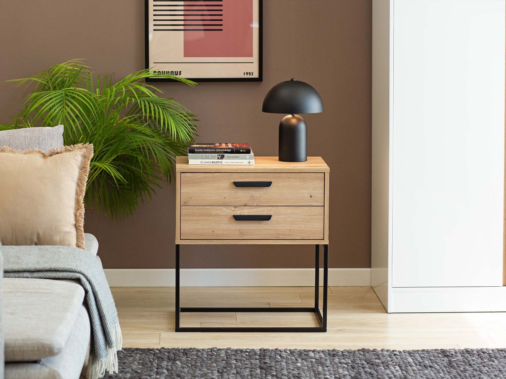 Minden modern hálószobába elengedhetetlen eleme két praktikus éjjeliszekrény. A CARDO éjjeliszekrény ugyanolyan jó választás lehet az egyszemélyes ágyak, mint a franciaágyak mellé. Fenntartható anyagokból készült. Ezek az anyagok minőségi kidolgozottsággal rendelkeznek, amely így hosszú élettartamot garantál. A forgácslap szélei ABS élekkel védettek, ami növeli a sérülésekkel szembeni ellenálló képességét. A tölgy felszíne és a fekete színű fém keret modern és elegáns megjelenést kölcsönöz az asztalnak. A tölgy Cadro éjjeliszekrény két praktikus fekete műanyag fogantyúval ellátott fiókkal rendelkezik, amelyek mindegyike maximum 5 kg súlyt bír el. Ezekben tárolhatja azokat a dolgokat, amelyeket éjszaka a keze ügyében szeretne tudni. Az éjjeliszekrény teljes teherbírása maximum 15 kg, így a tetejére elhelyezhet könyveket, éjjeli lámpát vagy egy pohár vizet is. Amennyiben pedig tippeket szeretne kapni a hálószoba modernizálásához, olvassa el cikkünket.