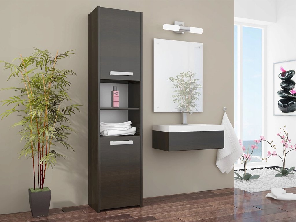 A keskeny CALI L30/L1 fürdőszoba szekrény a méreteinek köszönhetően kisebb szobákba is tökéletes választás. Nem csak a fürdőszobában, de az előszobában, a gyerekszobában vagy az irodában is megállja a helyét.Az egyszerű kialakításának köszönhetően pedig minden fajta stílusú bútor mellett jól néz ki. Ez a sokoldalú bútor darab két kis szekrényből és két nyitott polcból áll. Nem csak a törölközőknek és kozmetikumoknak, de egyéb apróságoknak is helyet biztosít.