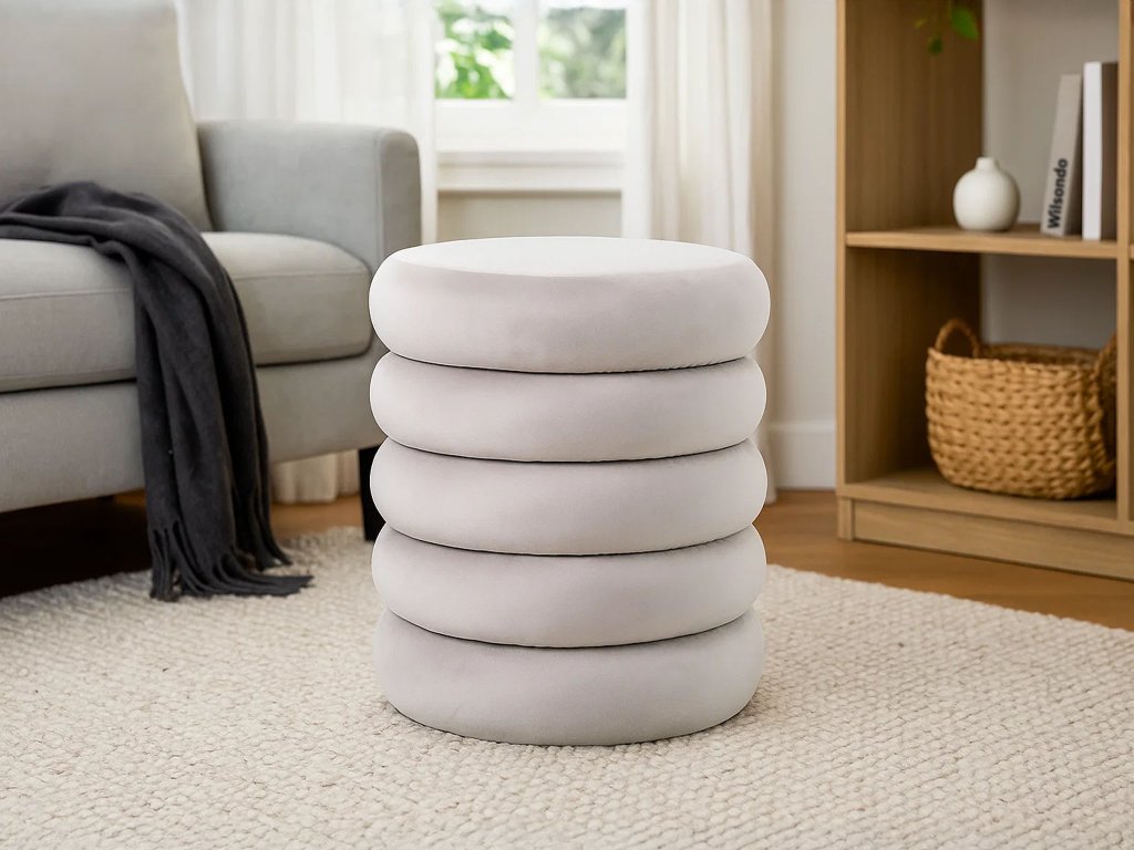 A Calvi puff bizonyíték arra, hogy egy praktikus kiegészítő is lehet stílusos és egyedi. Első pillantásra megragadja a figyelmet a különleges formájával, amely egymásra rakott, puha párnákat idéz, játékos, mégis elegáns karaktert adva neki. Egyedi designjának köszönhetően minden helyiségben felkelti majd a figyelmet, legyen szó nappaliról, hálószobáról vagy dolgozószobáról.