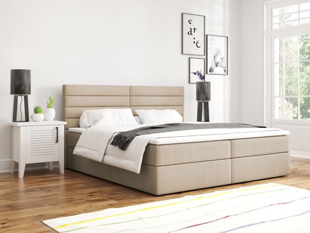 CARGO kárpitozott boxspring ágy - bézs