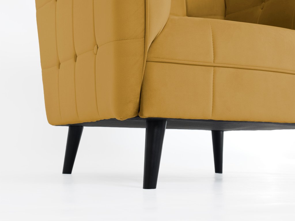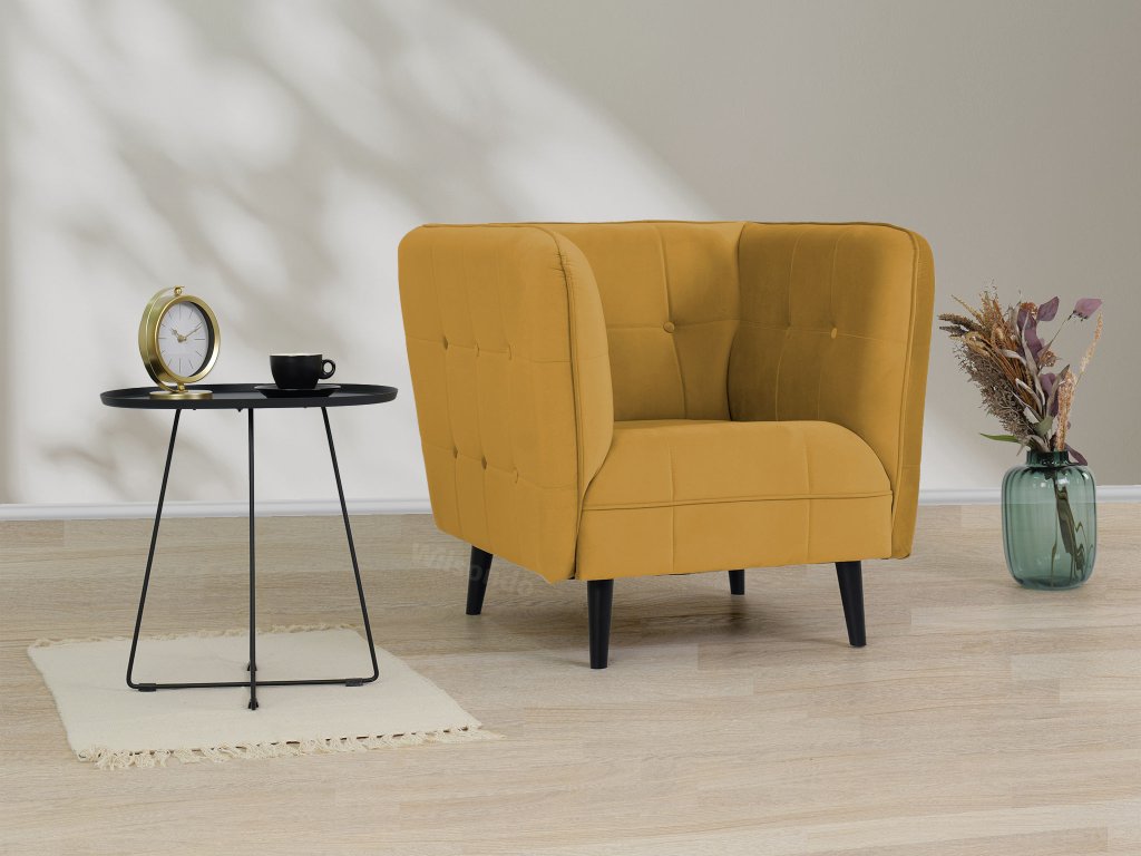 Az CASTELLO fotel egy igazán modern és feltűnő bútor darab, amely rendkívül kényelmes is. A steppelt fotel bársonyos anyaggal kárpitozott, amely kellemes tapintású és nagyon puha. Több divatos színváltozatban is kapható. Tökéletes választás lehet a nappaliba, a hálószobába vagy az előszobába, de megállja a helyét elegáns kávézókban vagy irodákban is. Az egész fotel fekete minimalista stílusú lábakon áll.