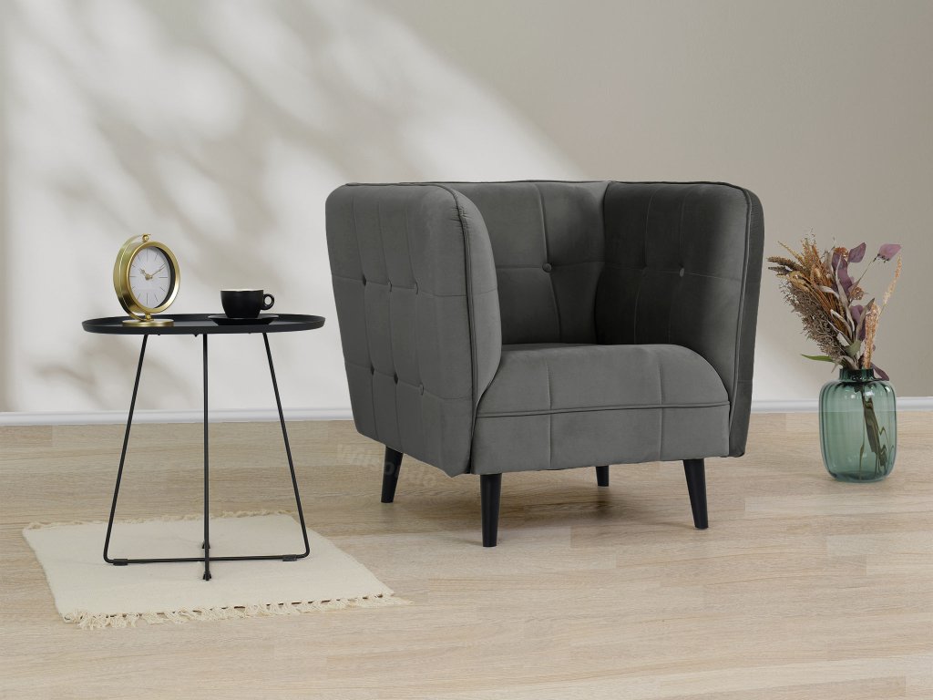 Az CASTELLO fotel egy igazán modern és feltűnő bútor darab, amely rendkívül kényelmes is. A steppelt fotel bársonyos anyaggal kárpitozott, amely kellemes tapintású és nagyon puha. Több divatos színváltozatban is kapható. Tökéletes választás lehet a nappaliba, a hálószobába vagy az előszobába, de megállja a helyét elegáns kávézókban vagy irodákban is. Az egész fotel fekete minimalista stílusú lábakon áll.