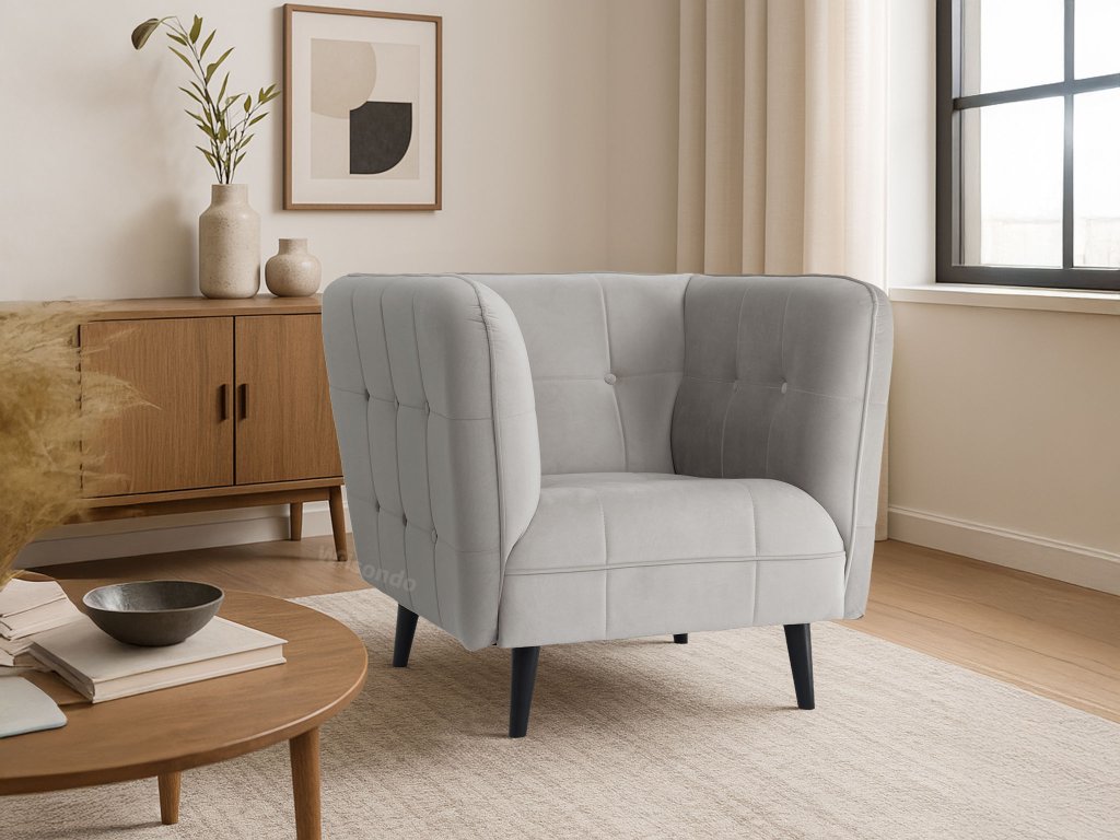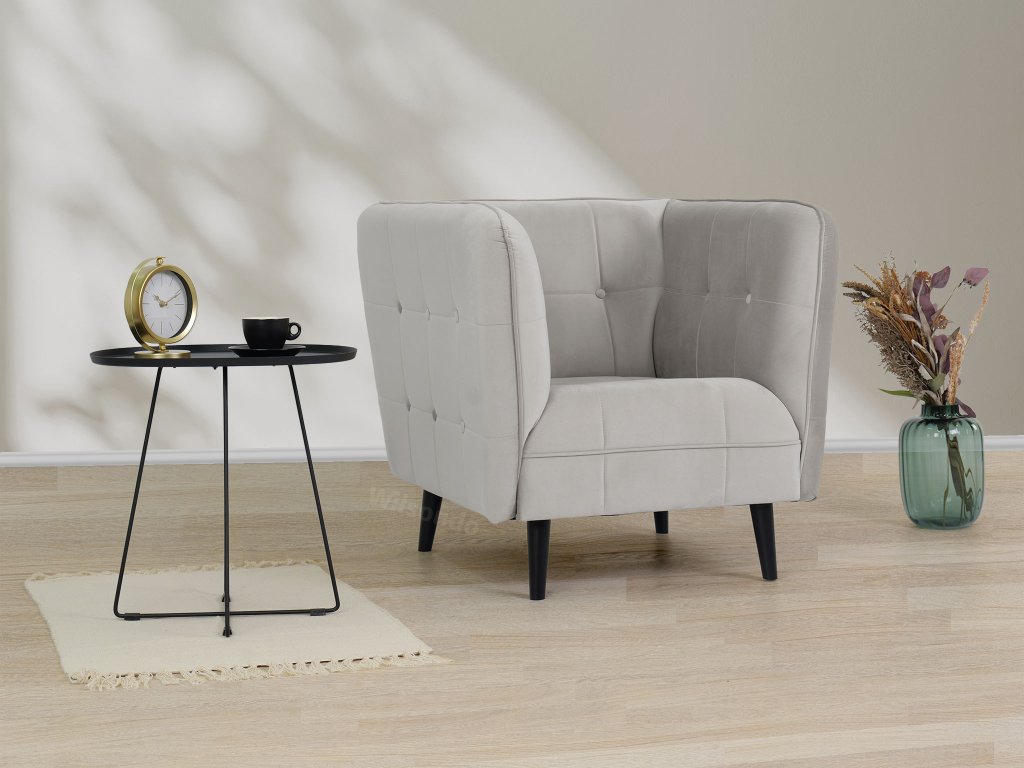 Az CASTELLO fotel egy igazán modern és feltűnő bútor darab, amely rendkívül kényelmes is. A steppelt fotel bársonyos anyaggal kárpitozott, amely kellemes tapintású és nagyon puha. Több divatos színváltozatban is kapható. Tökéletes választás lehet a nappaliba, a hálószobába vagy az előszobába, de megállja a helyét elegáns kávézókban vagy irodákban is. Az egész fotel fekete minimalista stílusú lábakon áll.