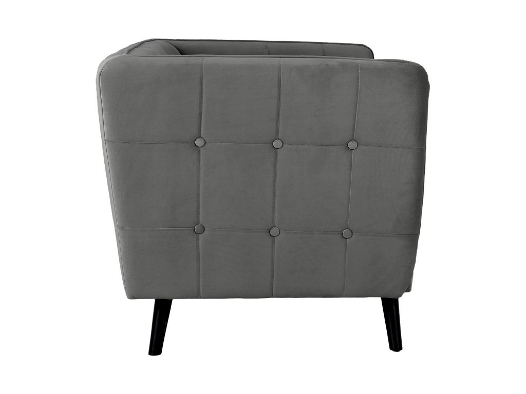 A sötétszürke szín visszafogott és univerzális, így könnyen kombinálható más bútorokkal. A háttámla tűzése textúrát ad a kanapénak, míg a fekete lábak kontrasztos részletet alkotnak. Formájának és arányainak köszönhetően különböző enteriőrökbe illik – a minimalista stílustól az eklektikusig.