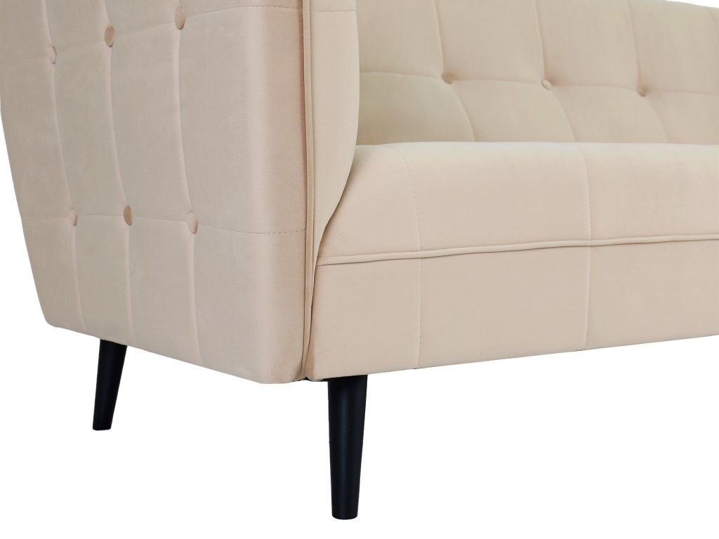 Castello III gyönyörű, modern, skandináv stílusú háromszemélyes kanapé bézs színben. Az érdekes dizájn és a gyönyörű bársonyos anyag igazán lenyűgöző darabbá varázsolják a kanapét, amely feltűnést kelt majd minden otthonban. Tökéletes választás a nappaliba, de akár az irodába, kávézóba vagy üzlethelységbe is választható. A kanapé tömör fából készült lábakon áll elegáns fekete színben. Első látásra beleszeret majd ebbe a modern és elegáns bézs színű háromszemélyes kanapéba.