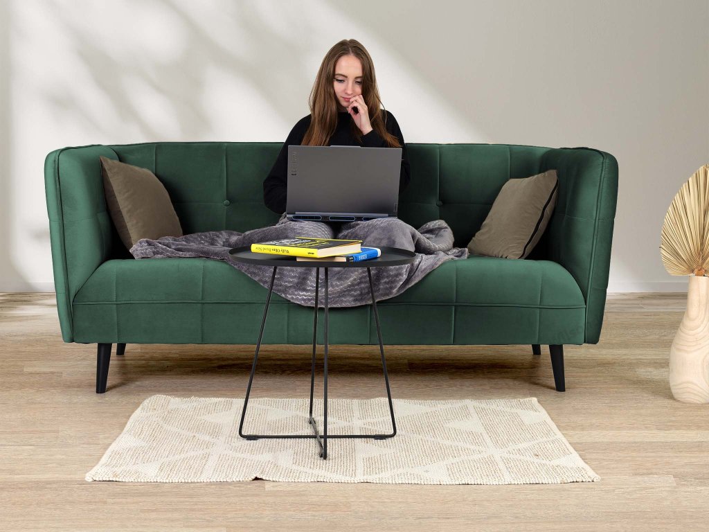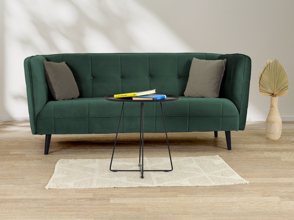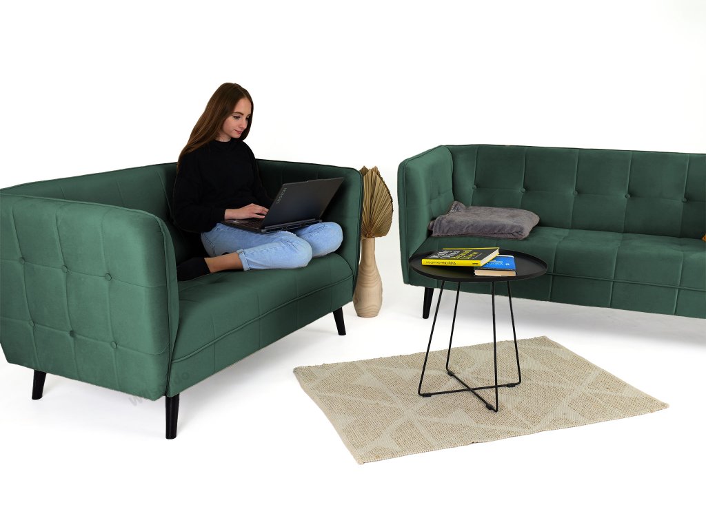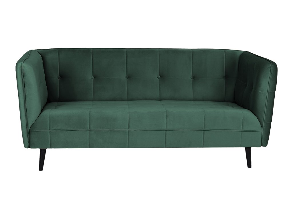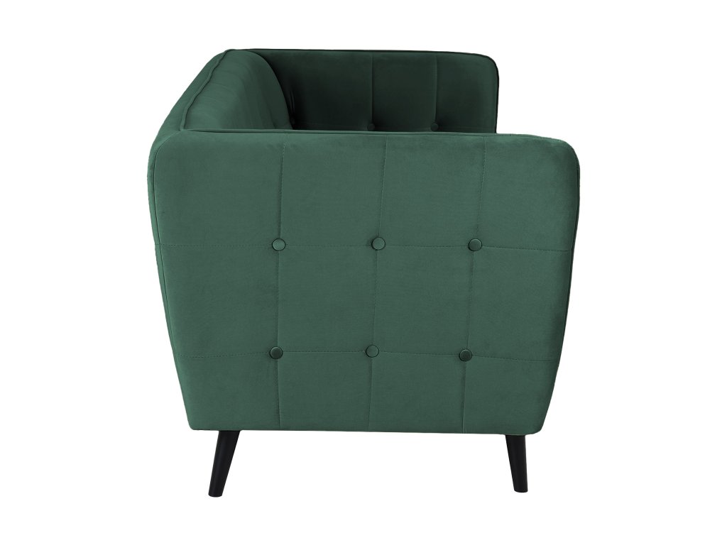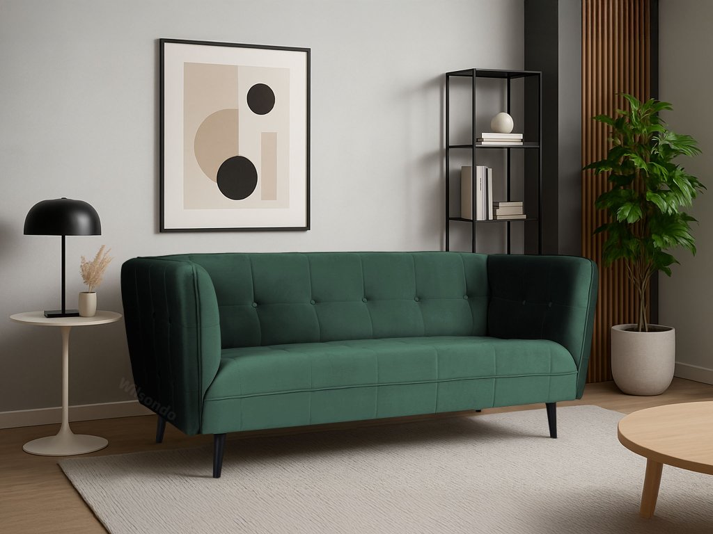 Castello III gyönyörű, modern, skandináv stílusú háromszemélyes kanapé sötétzöld színben. Az érdekes dizájn és a gyönyörű bársonyos anyag igazán lenyűgöző darabbá varázsolják a kanapét, amely feltűnést kelt majd minden otthonban. Tökéletes választás a nappaliba, de akár az irodába, kávézóba vagy üzlethelységbe is választható. A kanapé tömör fából készült lábakon áll elegáns fekete színben. Első látásra beleszeret majd ebbe a modern zöld kanapéba.