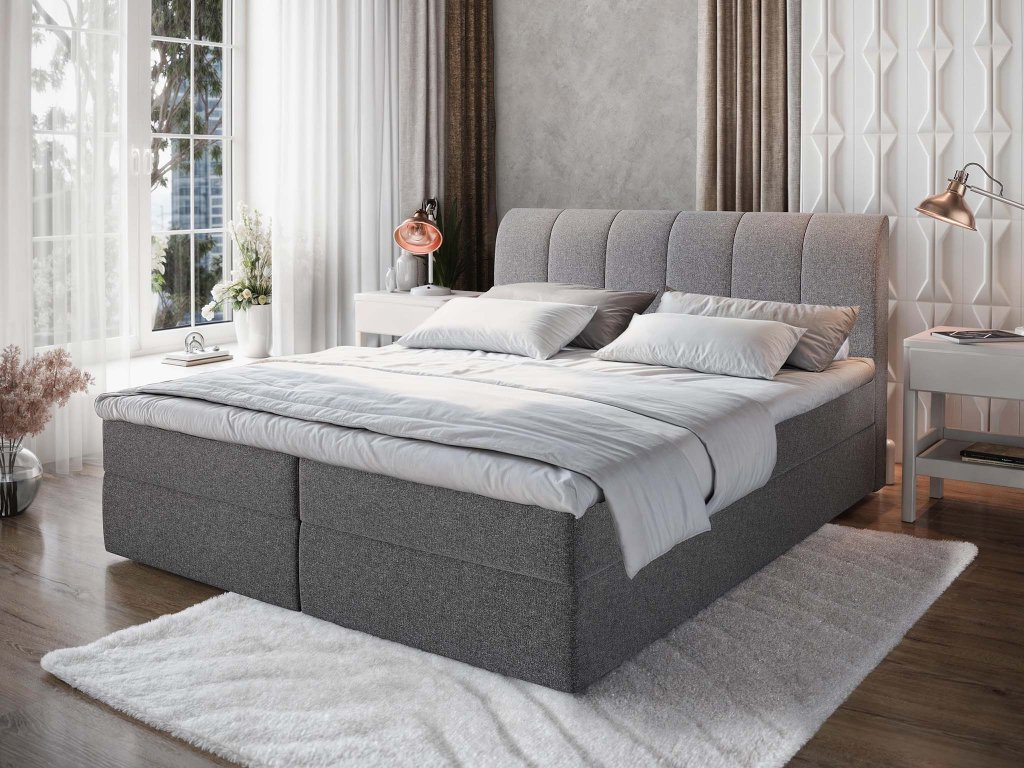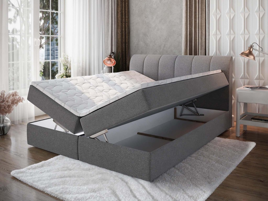 CEVANO kárpitozott boxspring ágy 140x200 - szürke
