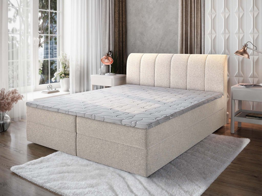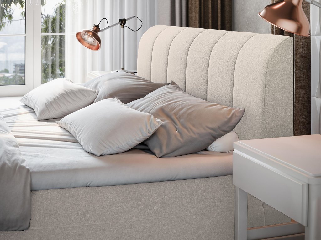 CEVANO kárpitozott boxspring ágy 160x200 - krémszínű