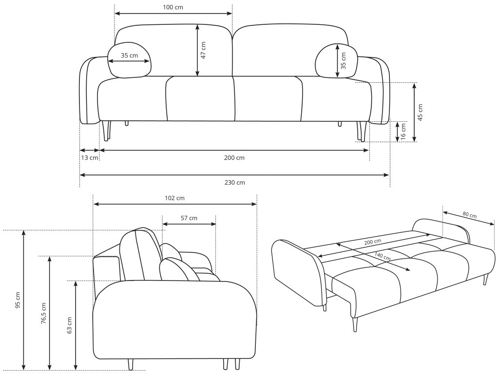 - Fekhely mérete szétnyitott állapotban: 140 x 200 cm