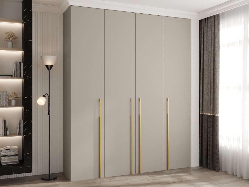 Como 3 modern négyajtós gardróbszekrény gyönyörű kasmír színben elegáns arany színű fogantyúkkal
