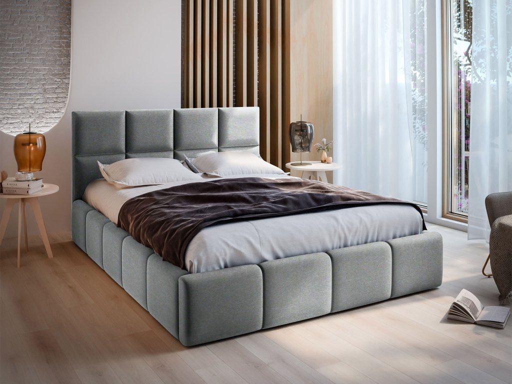 COMONE kárpitozott ágyneműtartós franciaágy 160x200 - szürke
