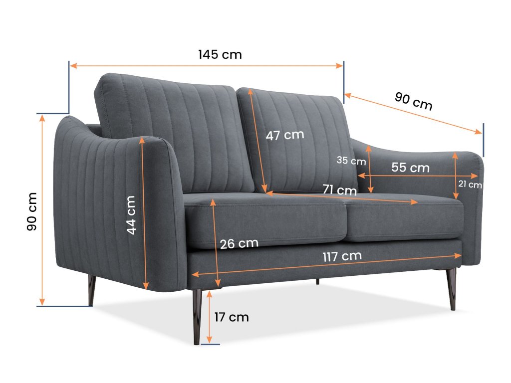 A kanapé váza tömör fából és erős HDF bútorlapból készült, ami stabilitást és hosszú élettartamot garantál. Az ülőfelület nagy rugalmasságú T30-as habbal van kitöltve (vastagsága 3 cm), ami kényelmes ülést biztosít, miközben a két részre osztott ülőfelület és a függőleges steppelés eleganciát és modern megjelenést kölcsönöz a kanapénak. A kanapé luxusos Cloud 03 bársonyos szövettel van kárpitozva. A minimalista stílusú fém lábak modern megjelenést és kiváló stabilitást biztosítanak. Választhatja mellé a Cory fotelt vagy bármilyen más fotelt és máris kész a stílusos és otthonos nappali.