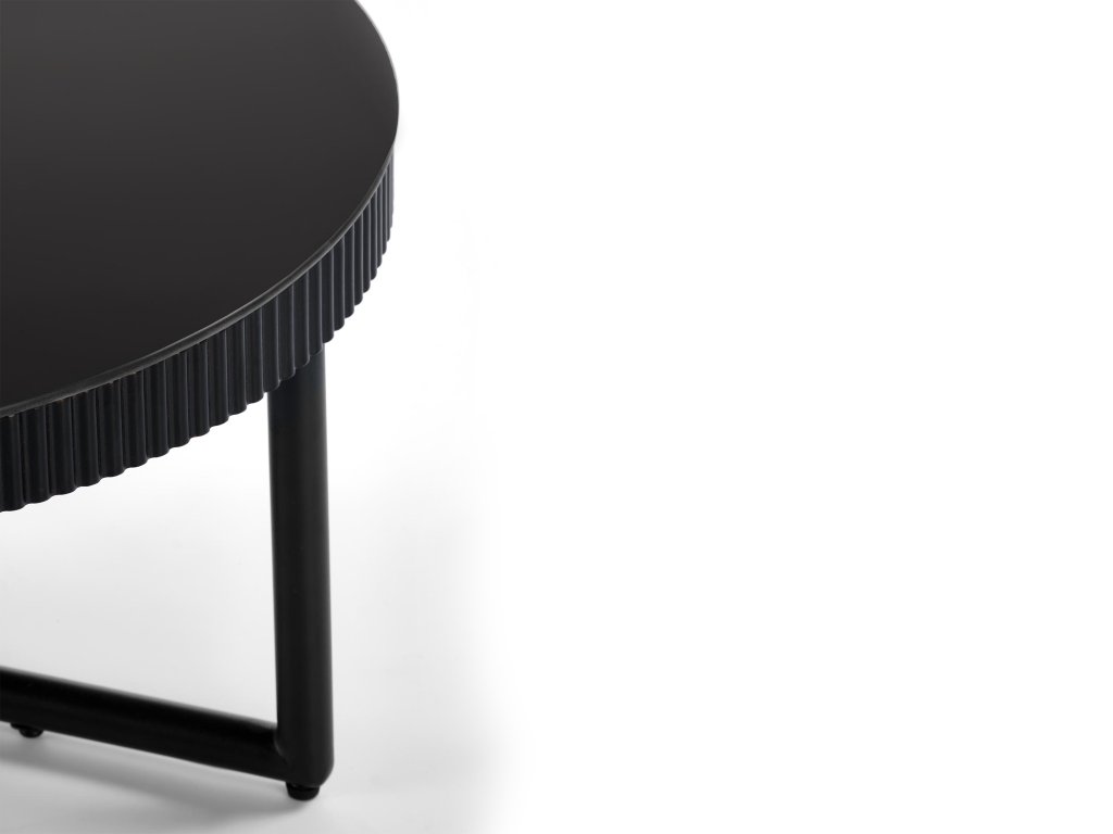 A Cosmo S konferenciaasztal több mint csupán egy praktikus kiegészítő — vizuálisan hangsúlyos darab, amely azonnal felkelti a figyelmet. Elegánsan ötvözi a 60 cm átmérőjű üveglapot, a dió színű lakkozott MDF részleteket és a fekete, porfestett acélból készült masszív szerkezetet. Modern formájának és kontrasztos kivitelezésének köszönhetően könnyednek, ugyanakkor stabilnak és masszívnak hat. Legyen szó nappaliról, dolgozószobáról vagy irodáról, a Cosmo egyszerre lesz praktikus segítőtárs és kifinomult díszítőelem. Az asztalhoz könnyedén összeválogatható a többi bútor az enteriőrben.
