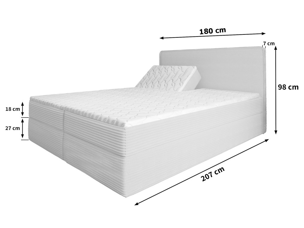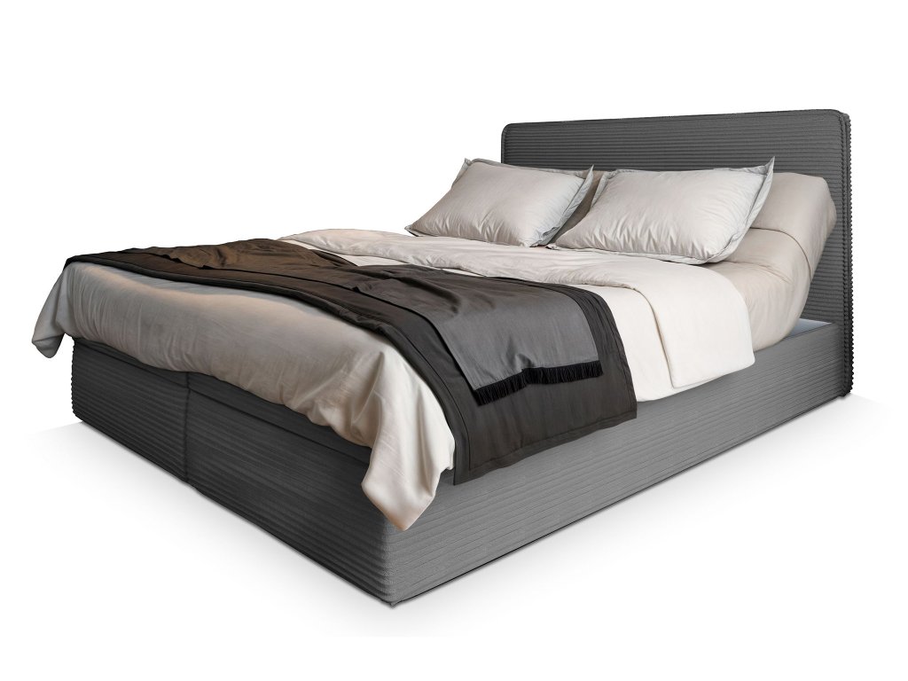 Szürke szövettel kárpitozott DASTOR boxspring ágy 180x200 cm, amely tökéletes egyensúlyt képez a modern design és a maximális kényelem között. Az ágy beépített Bonell rugós matracokkal rendelkezik, amely optimális alátámasztást biztosít a testnek és így garantálja azt a regenerációt, amelyre mindenkinek szüksége van alvás során. Praktikus megoldást jelent a tágas ágyneműtartó is, amely a matracok alatt helyezkedik el. Ez helyet biztosít a lepedőknek, ágyneműhuzatoknak, paplanoknak és párnáknak. A rugós automata felnyitó mechanizmusoknak köszönhetően a tárolóhelyhez gyorsan és erőfeszítés nélkül hozzáférhet. A kényelmet tovább fokozza, hogy a matrac a fej résznél állítható – mindkét oldal külön pozícionálható az igényeinek megfelelően, amit olvasáskor, tévénézés közben vagy pihenéskor különösen értékelni fog. A kontinentális ágy magas, puha, kárpitozott ágytámlával rendelkezik, amely igazán praktikus. Az alacsony lábai biztosítják a stabilitását.