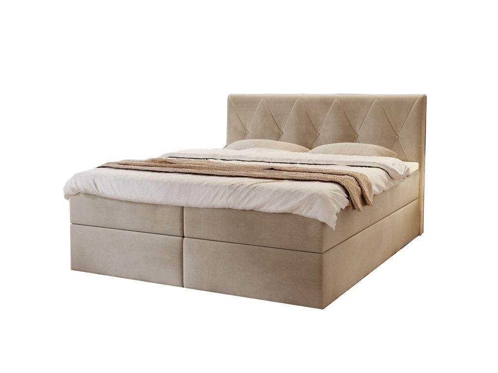 DEAN kárpitozott boxspring franciaágy - bézs