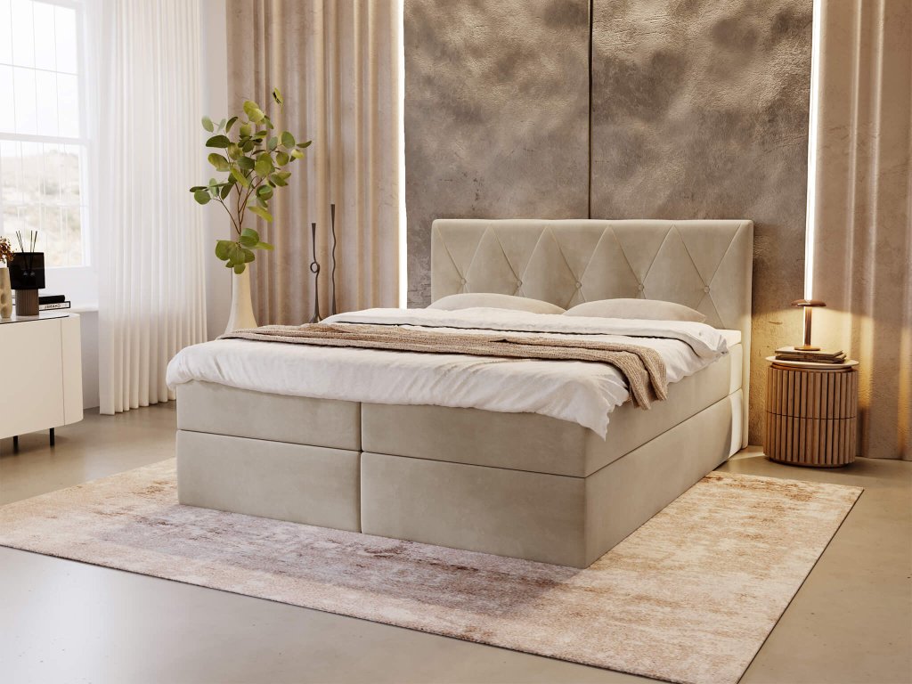 DEAN kárpitozott bézs boxspring franciaágy