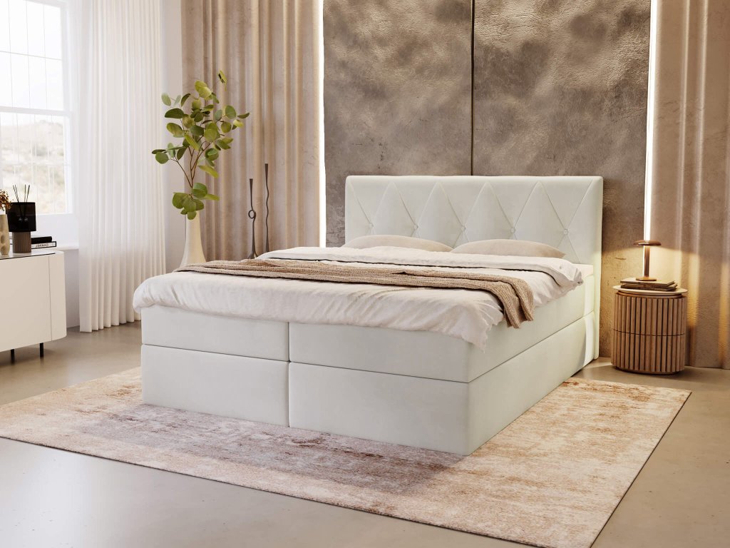 DEAN kárpitozott boxspring franciaágy - krémszín