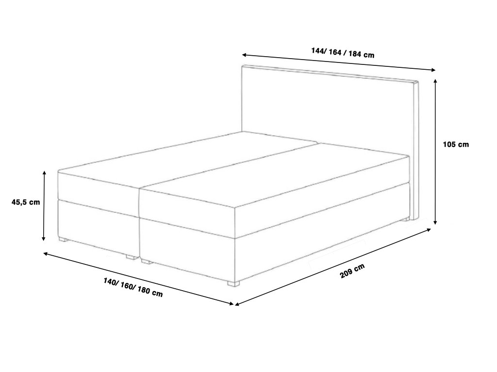 Minden hálószoba központi eleme egy gyönyörű franciaágy, amelynek nem csak stílusosnak, de kényelmesnek és időtállónak is kell lennie. Ilyen a mi DEAN kárpitozott boxspring franciaágyunk is, amely gyönyörű és elegáns krémszínben készül. Robosztus szerkezettel rendelkezik és praktikus ágyneműtartóval. A szerkezete a tömör fa és laminált forgácslap kombinációjának köszönhetően igazán megbízható és strapabíró. Az ágytámla 5 cm vastag tömör fából és T25-ös habból készül. Az ágytámla kárpitozott és elegáns steppelés díszíti. Azonban a háttámla nem csak szép, de igazán hasznosnak is biztonyul majd az esti tévénézés vagy olvasás közben. A Dean franciaágy beépített ágyráccsal és matraccal is el van látva. A matrac magas ellenálló képességgel és pontrugalmassággal rendelkezik, továbbá hengeres rugókkal, amelyek külön kis "táskákba" vannak csomagolva. A 9 keménységi zóna tökéletes alátámasztást biztosít a hátgerincnek, a csípőnek és a vállaknak, így biztosítva optimális pihenést.