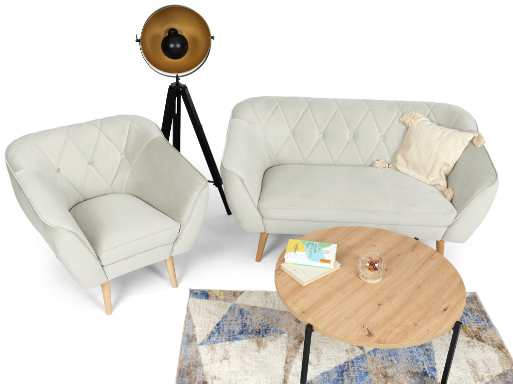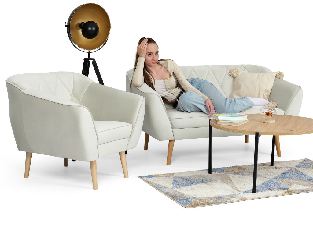 A kanapé és a fotel küllemét csinosítja a háttámla elegáns steppelése, mely T25 habbal van kitöltve. Az ülőrészt T30 hab alkotja, amely biztosítja a problémamentes, hosszú és főleg kényelmes használatát. A profilozott háttámlák és kartámlák tökéletes ergonómiai kényelmet biztosítanak. Ez a szett tökéletes választás lehet a nappaliba, de akár szépségszalonokba, éttermekbe, kávézókba is megfelelő lehet.