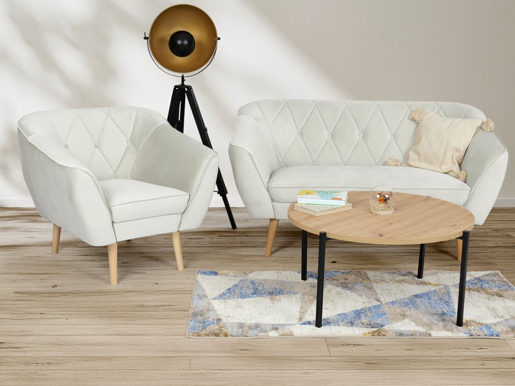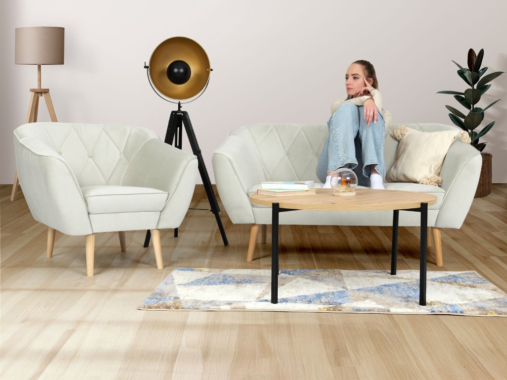 A krém színe eleganciát visz a szobába és otthonos légkört teremt. A teljes garnitúra natúr színű stabil tömör fa lábakon áll, amelyek kiemelik a skandináv designt, és biztosítják a bútor strapabírását és stabilitását.