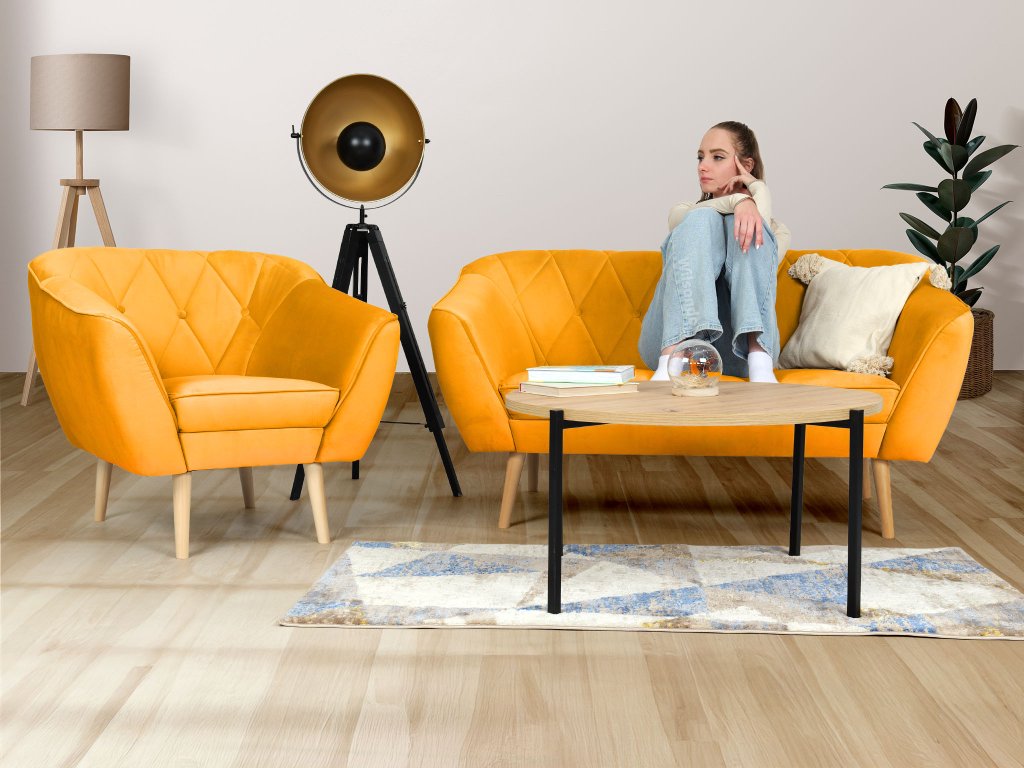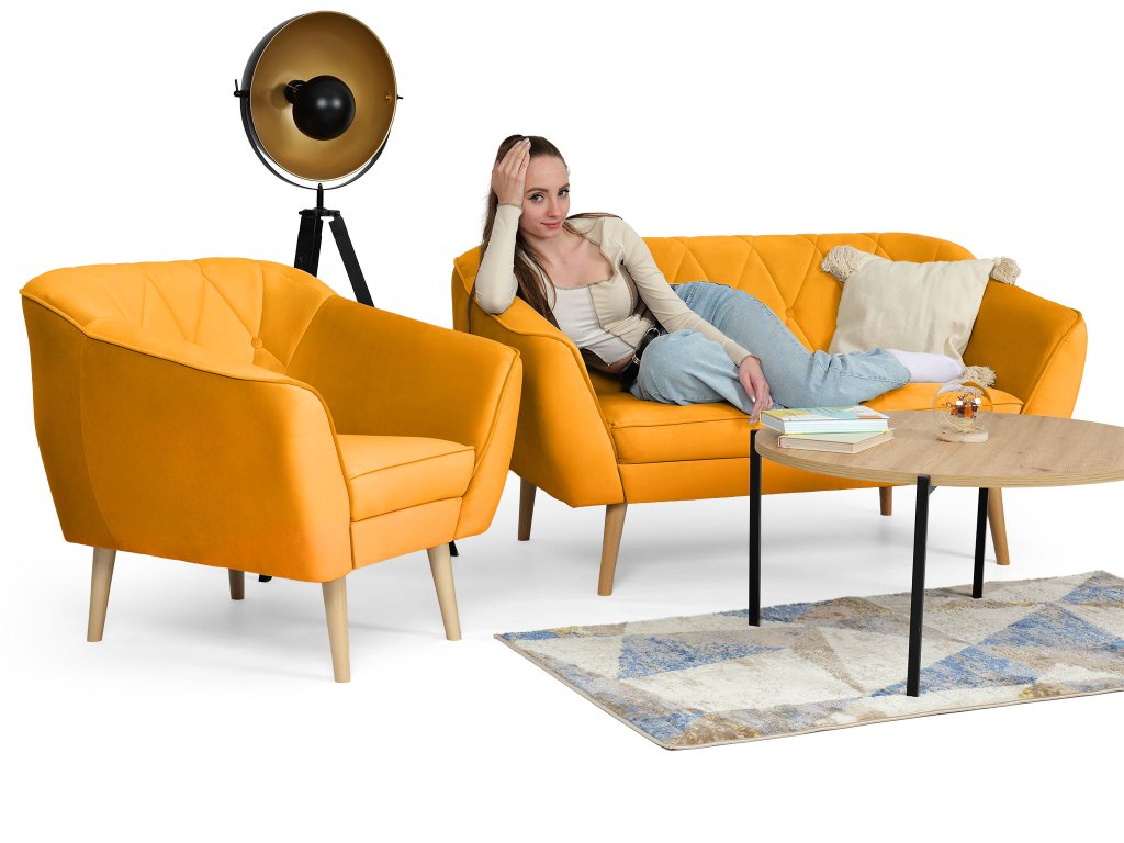Egy igazán nem mindennapi, elegáns és kényelmes ülőalkalmatosságot keres az otthonába? Az exkluzív DEANA ülőgarnitúra szett gyönyörű narancssárga Magic Velvet szövettel van kárpitozva. A garnitúra tartalmaz egy kétszemélyes Deana II kanapét és egy Deana fotelt, amelyek együtt tökéletes összhangban van A MAGIC VELVET egy bársonyos szövet, amely tapintásra kellemes és lágy, nem bolyhozódik, így hosszútávon megőrzi eredeti kinézetét.