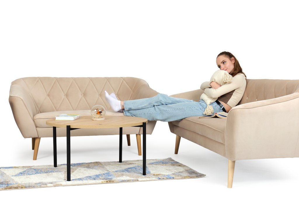 Minőségi, praktikus és elegáns szettet keres a nappaliba? A bézs bársonyos Royal szövettel kárpitozott Deana ülőgarnitúra szett 3+2+1 kombinációban kapható és tartalmaz egy fotelt, egy kétszemélyes és egy háromszemélyes kanapét. Mindkét kanapét és a fotelt is úgy tervezték, hogy ne csak a külalakjuk legyen nem mindennapi, de különleges kényelmet is garantáljanak. Minden darab küllemét csinosítja a háttámla elegáns steppelése, mely T25 habbal van kitöltve. Az ülőrészt T30 hab alkotja, amely biztosítja a problémamentes, hosszú és főleg kényelmes használatát. A profilozott háttámlák és kartámlák tökéletes ergonómiai kényelmet biztosítanak. Ezzel a két kanapéval és a fotellel egy gyönyörű, modern, skandináv stílusú otthont varázsolhat majának. A szett tökéletes választás lehet a nappaliba, de akár szépségszalonokba, éttermekbe, kávézókba is megfelelő. A kanapék és a fotel is natúr színű tömör fa lábakon állnak.